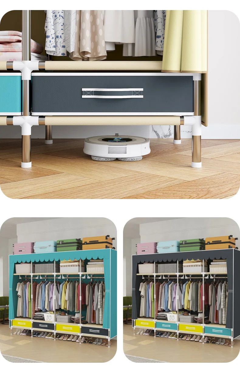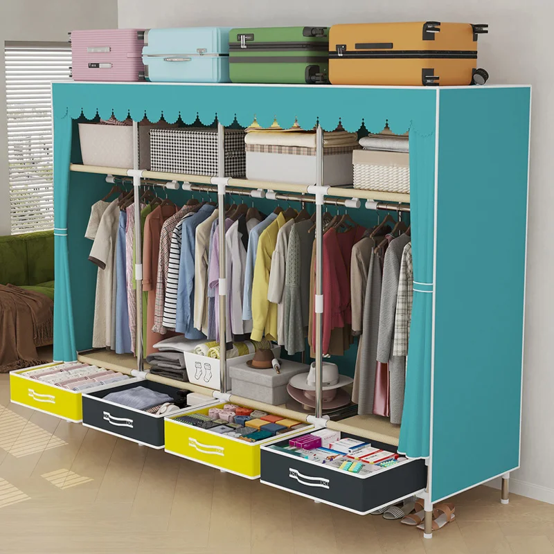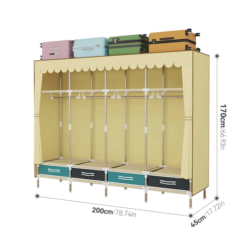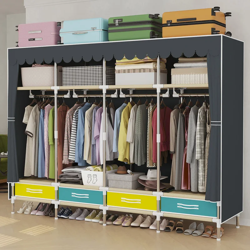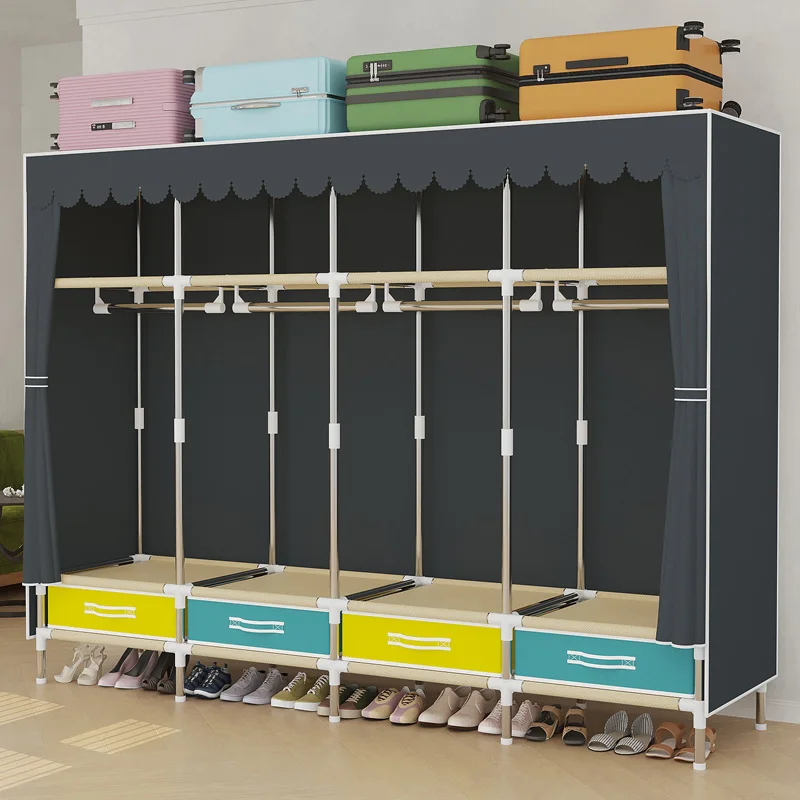 1 Piece of Simple and Modern Wardrobe, with Solid Color Curtain Door Curtain, Slide Rail, Assembly Rental, Economical, Sturdy, Durable, All-Steel Frame, Multi-Interface Fixed Home Storage Wardrobe, Suitable for Bedroom