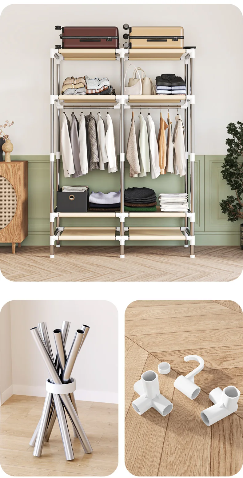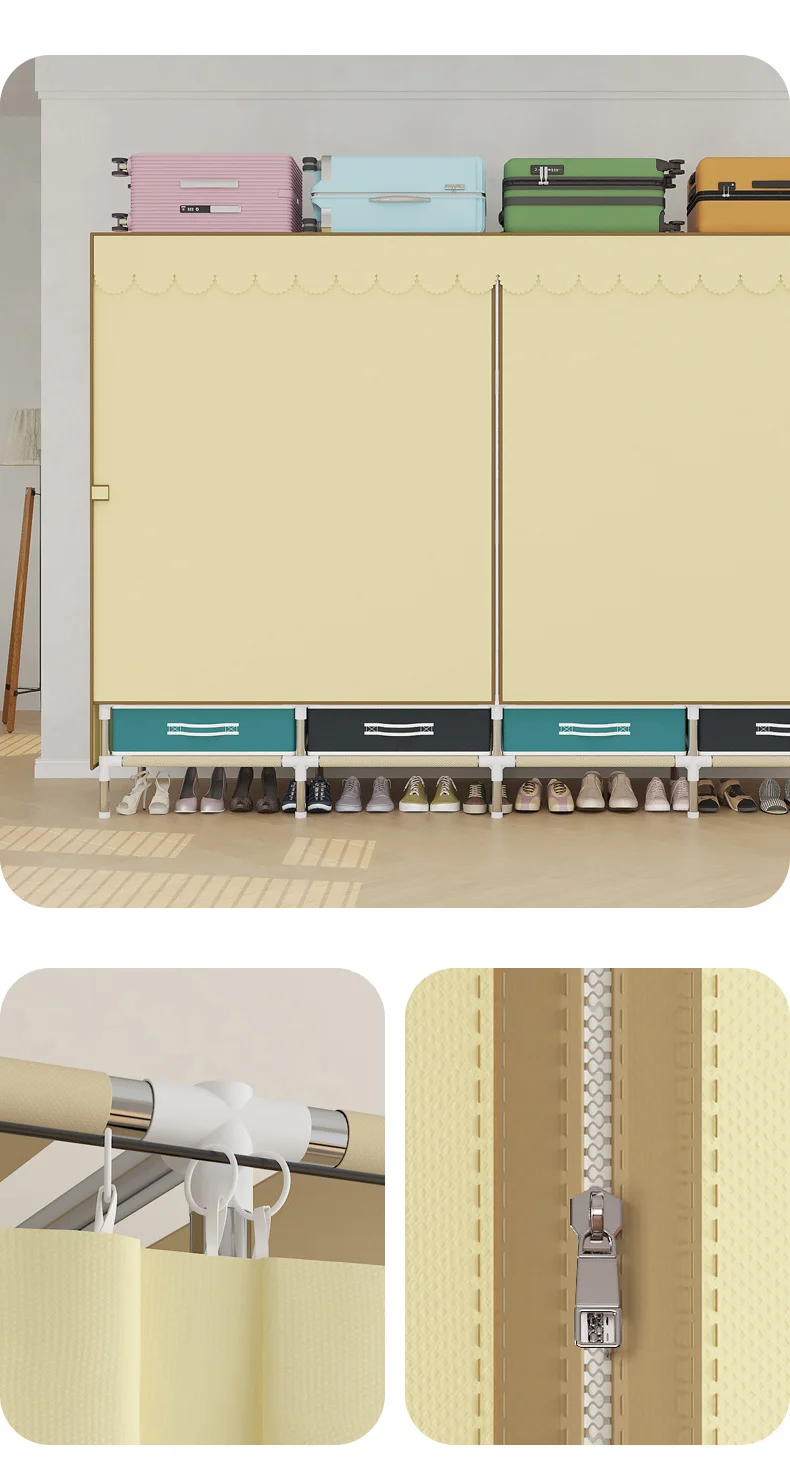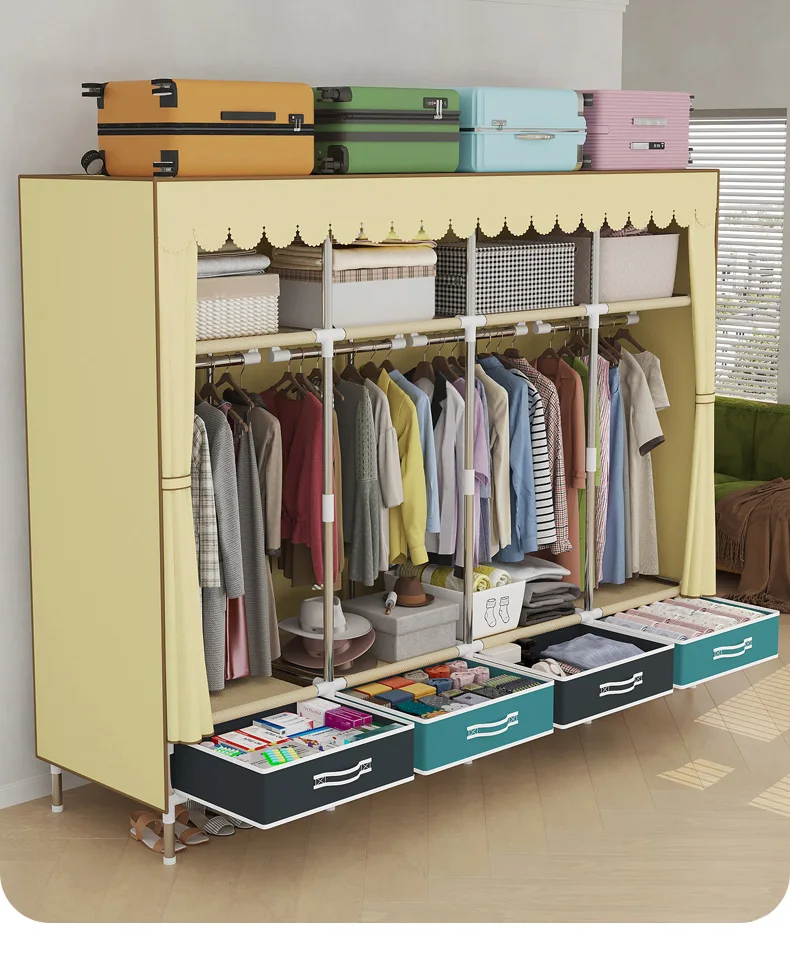 1 Piece of Simple and Modern Wardrobe, with Solid Color Curtain Door Curtain, Slide Rail, Assembly Rental, Economical, Sturdy, Durable, All-Steel Frame, Multi-Interface Fixed Home Storage Wardrobe, Suitable for Bedroom