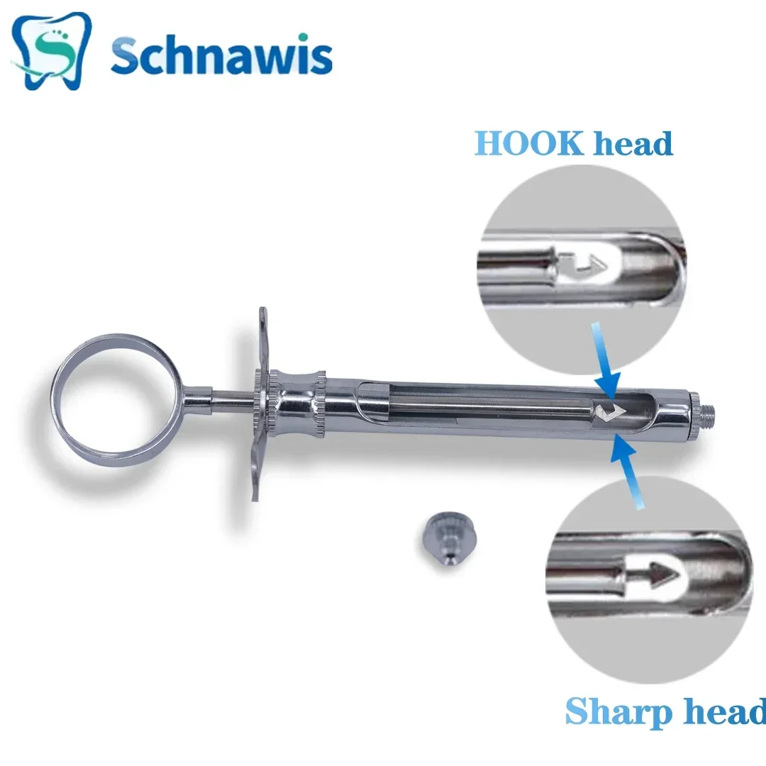 1 Set Dentistry Injection Syringe Hook-headed Sharp Head Stainless Steel Dental Aspirating Syringe Surgical Instrument 1.8ML