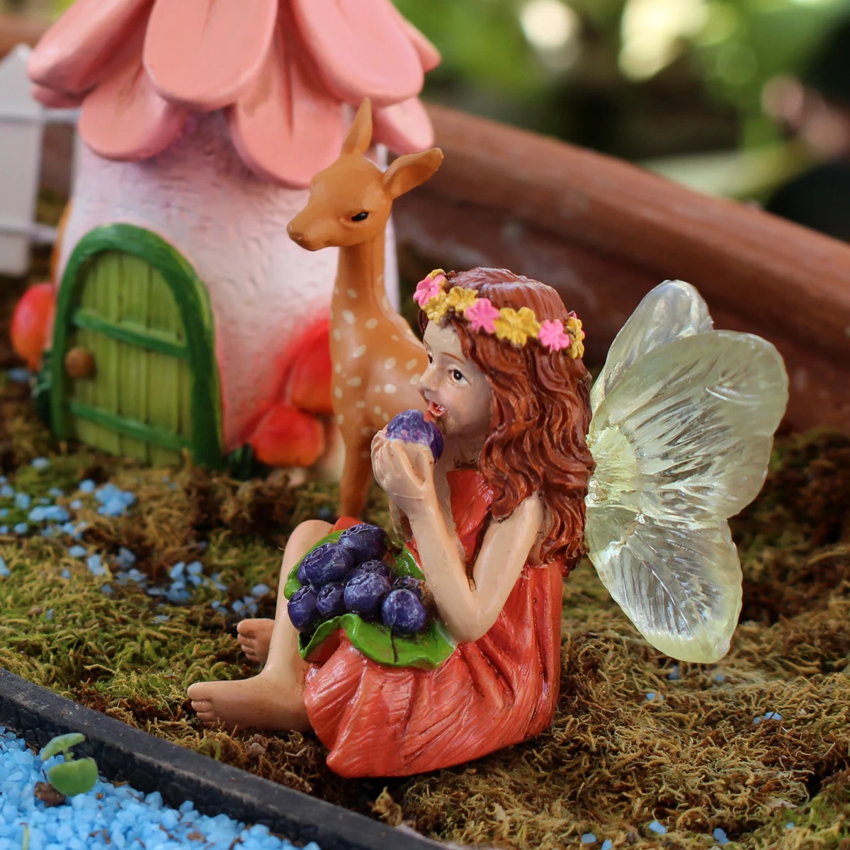 1 Set Mini Berry Eating Flower Fairies, Cute Outdoor Fairy Statues, Garden Micro Landscape Resin Crafts, Courtyard Lawn Home Dec
