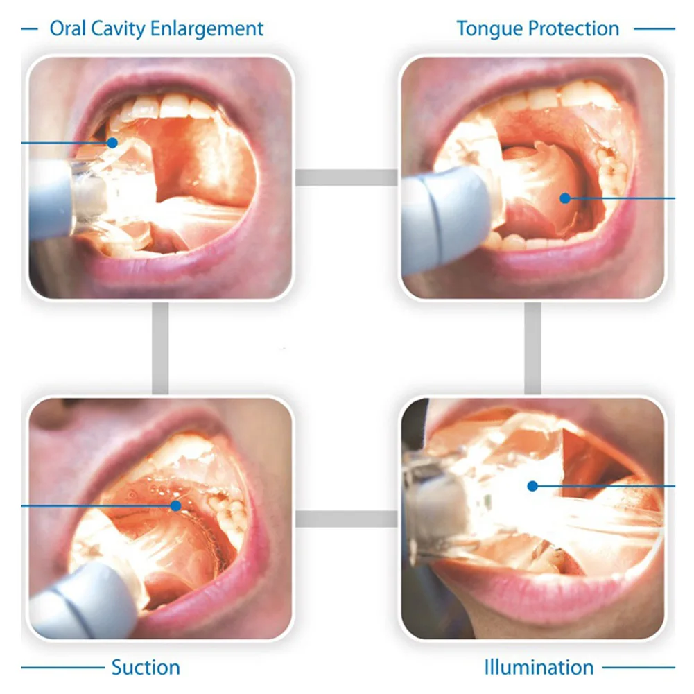 2.Protects the patient’s tongue while optimizing and illuminating intraoral workspace.