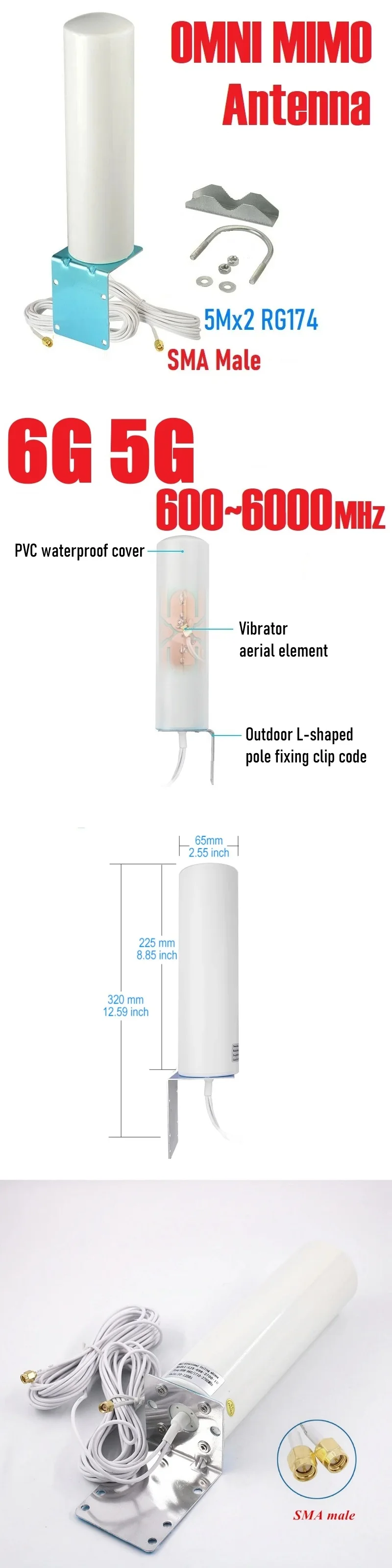 10 12 15 dBi 4G 5G LTE OMNI Antenna 600 6000MHz Outdoor Antenna MIMO Dual SMA Male 5m 16.4ft Cable For HUAWEI Modem Router AP