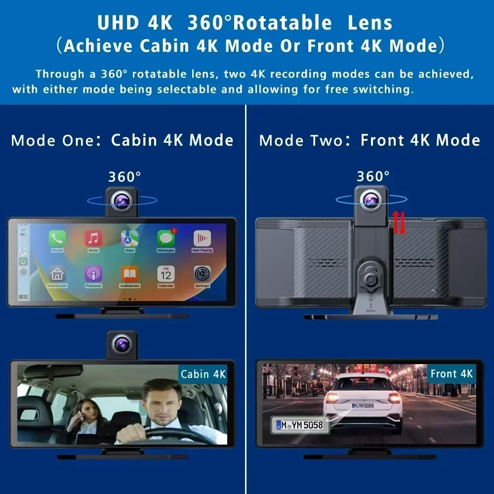 The front camera can rotate 360 °, and can record both inside and outside the car as well as the passenger seat