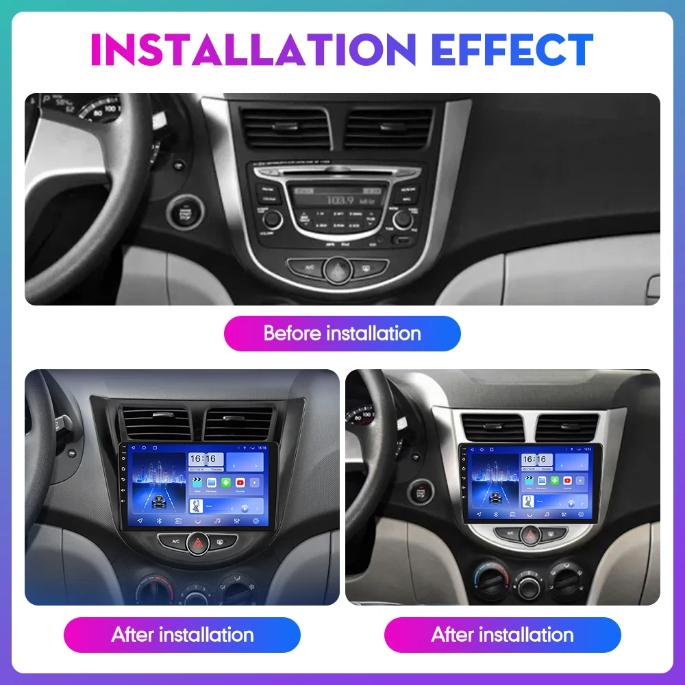10.33 Inch Automotive Radio Headunit For Hyundai Verna Accent Solaris 2010-2016 Double Din Android Octa Core Car Stereo Multimedia Player Device QLED Screen Carplay Android AUTO