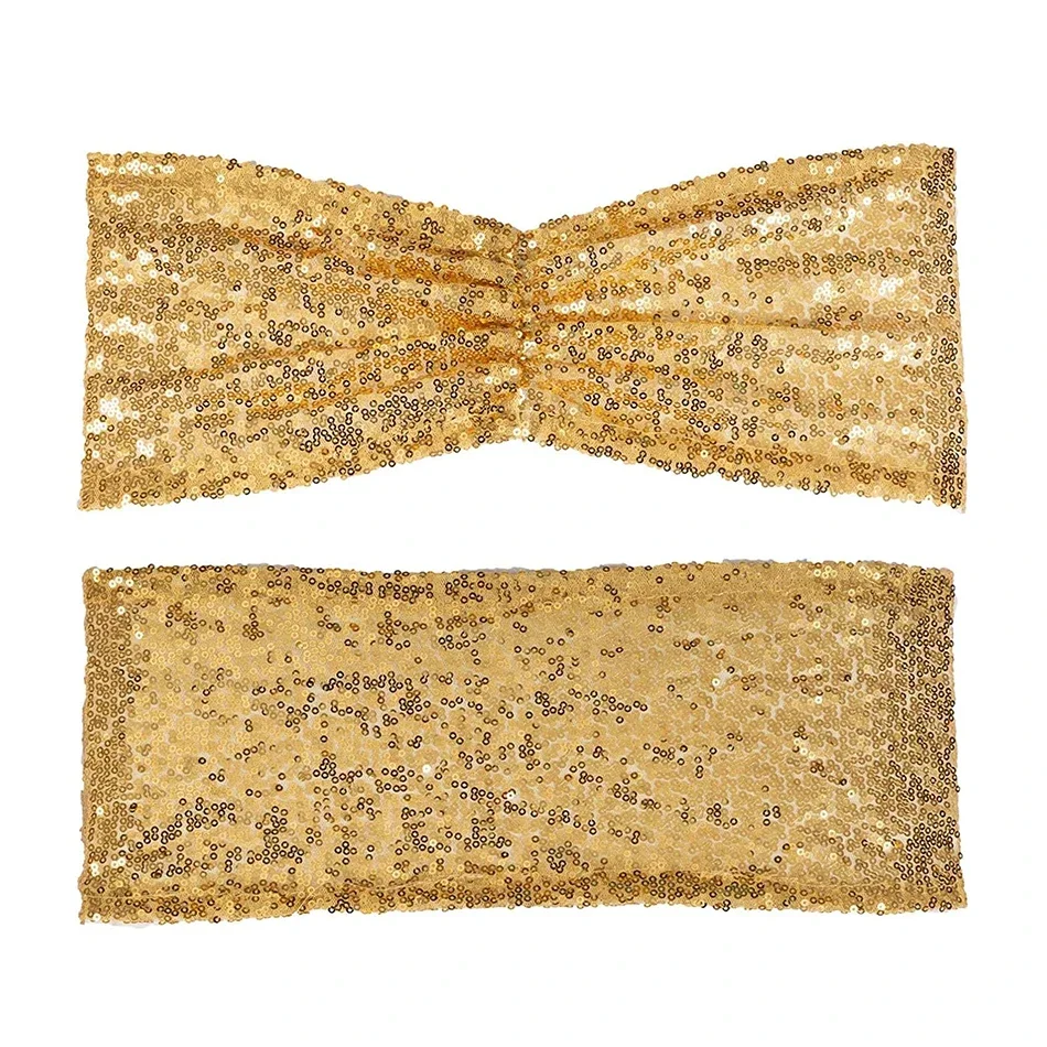 10/50PCS Sequin Wedding Chair Sashes 15x35cm Setting Bows Chair Cover Ribbons for Wedding Banquet Party Baby Shower Decor