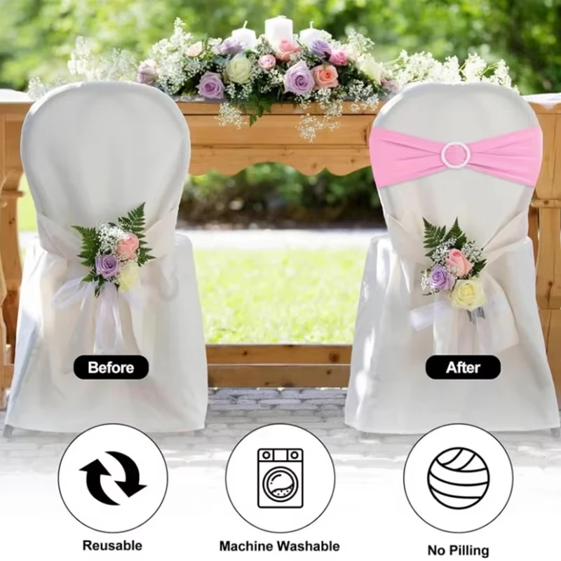 100/50/10pcs Elastic Chair Knot Wedding Decoration Buckle Sashes Back Cover Mariage Hotel Home Seat Elegant Modern Ribbon Decors