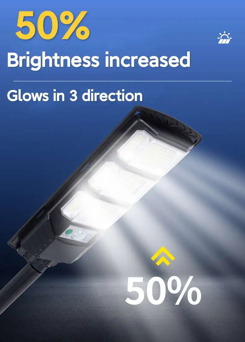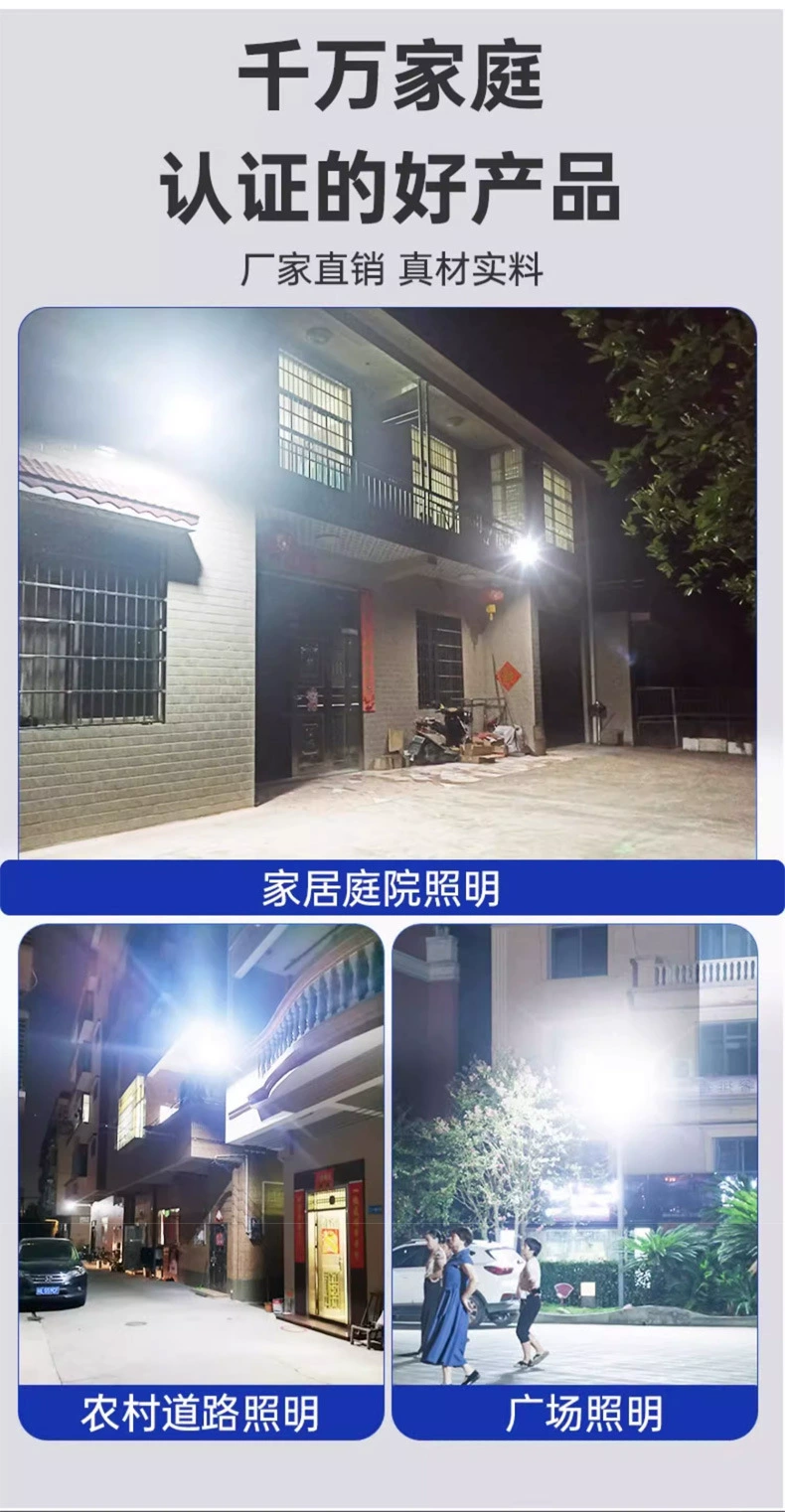 Solar street lights, three sides of large screen lighting, brightness increased by 600%, unprecedented. The soft light is not dazzling.