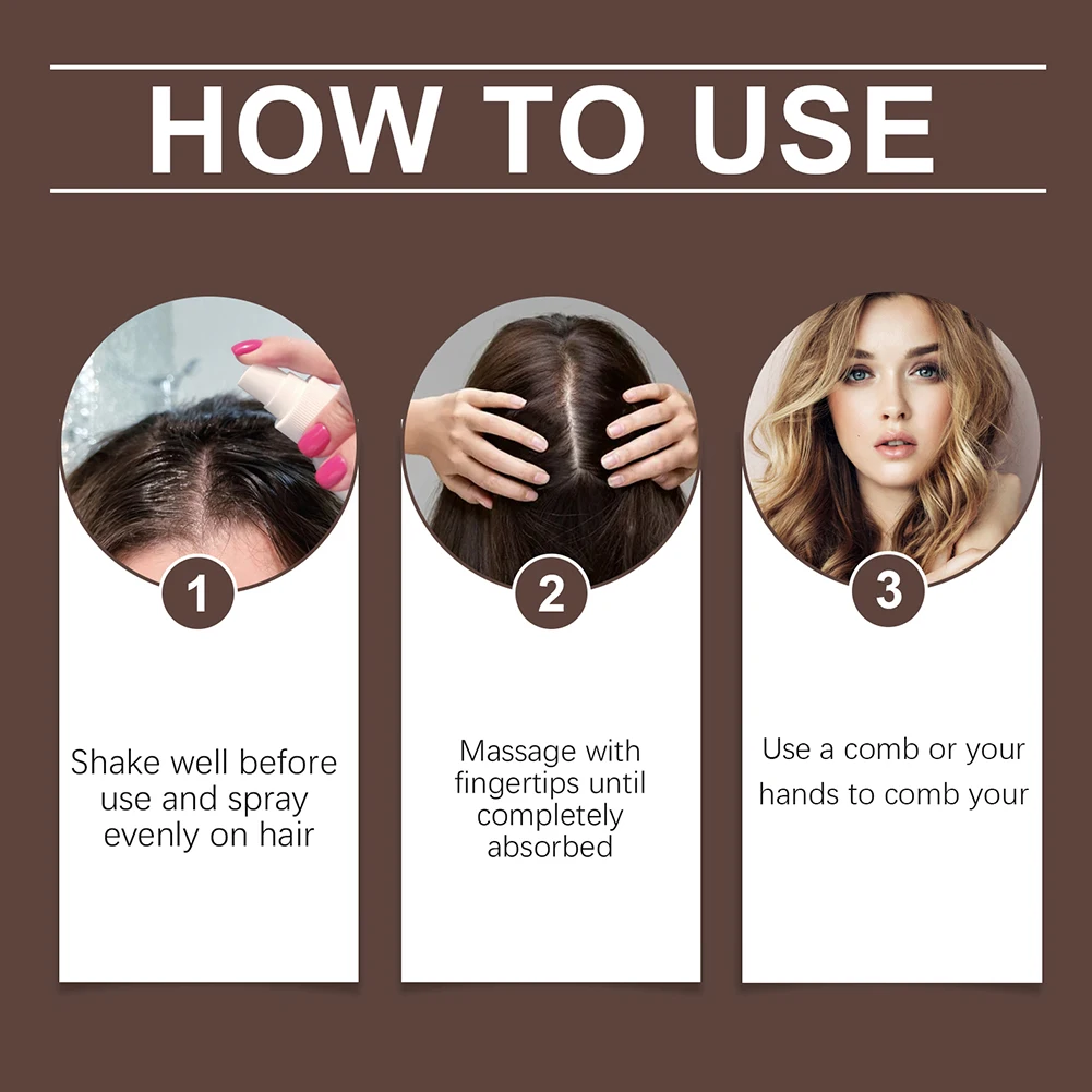 Usage: 1. Shake well before use and spray evenly on hair; 2. Massage with fingertips until completely absorbed; 3. Use a comb or hands to style your hair.
