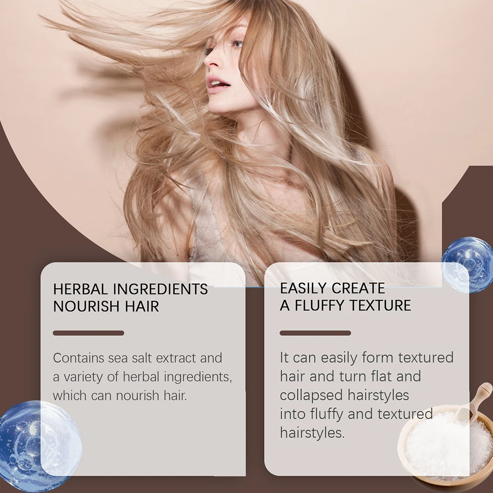 1.Premium Ingredients: Made with high-quality sea salt extracts and various herbal components: This sea salt spray is gentle and safe, nourishing your hair while preventing frizz. Ideal for setting hairstyles without irritating the scalp.