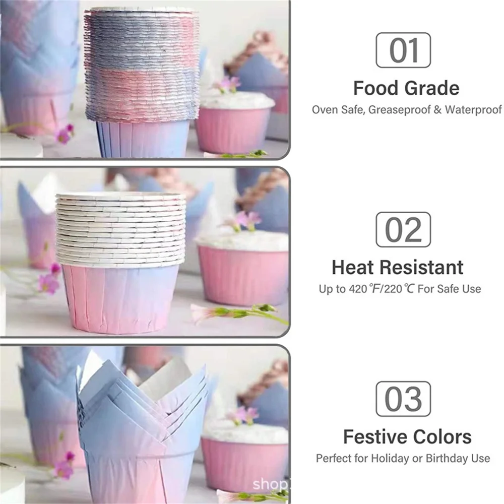 These tulip cupcake liners are perfect for beginners, housewives and professional bakers to bake, making cake making more convenient. It is widely used in weddings, birthdays, anniversaries and special occasions.