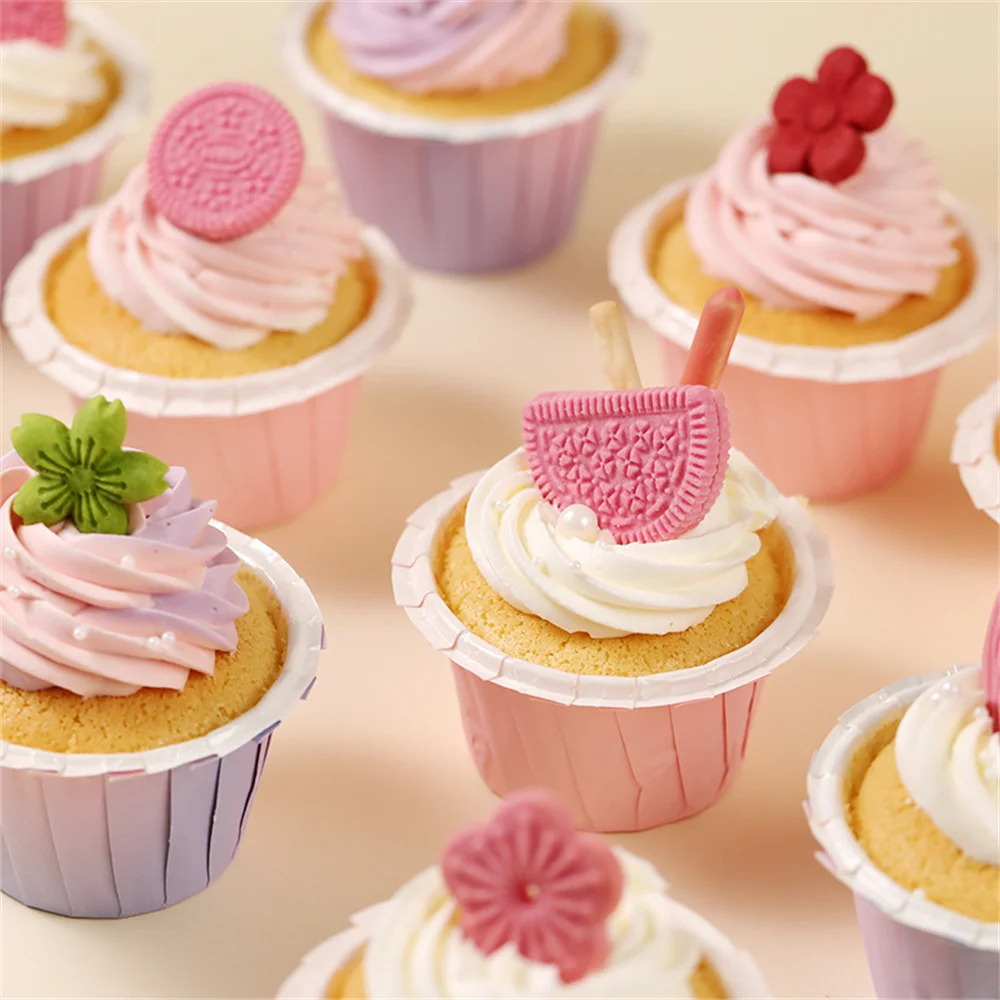 Made of greaseproof paper, they will be thicker and more realistic than ordinary cake cups. Can withstand up to 425°F/220°C, oven safe and environmentally friendly. Safe, no odor, no fading, non-stick. Great for baking.