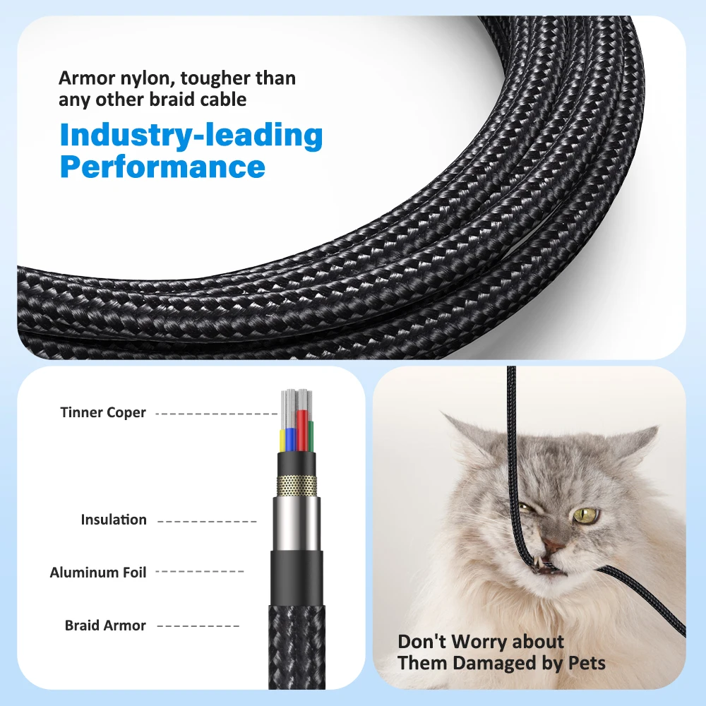 ●Ultra Durable: Metal Port +Nylon Braid Wire, Makes the Product durable and resists kinks and tangles.