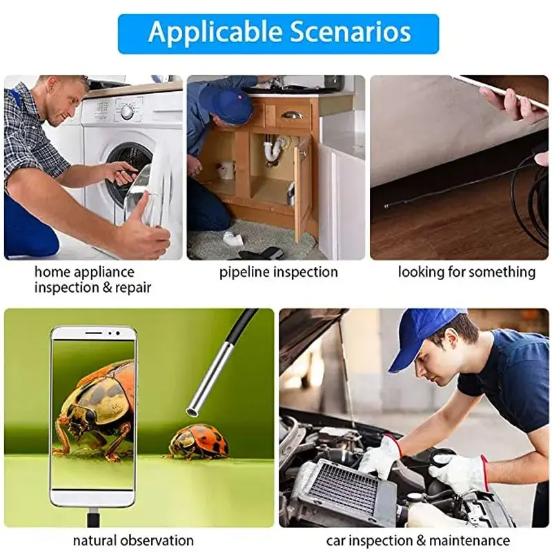 Noenname_Null 1080P 3 In1 Endoscope Camera 720P Sewer Industrial Piping Car Inspection Endoscopic 8Mm For Usb Pc Android Type C