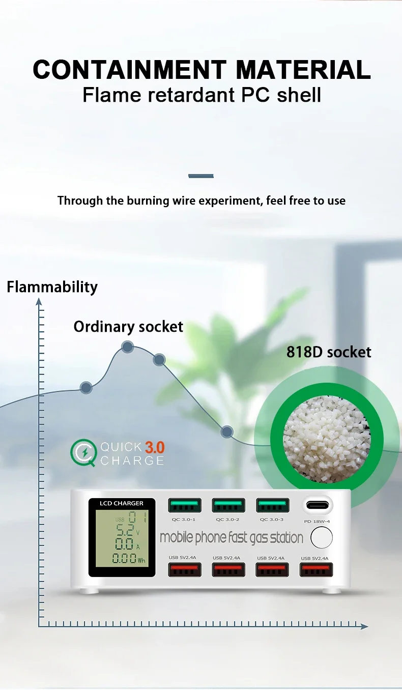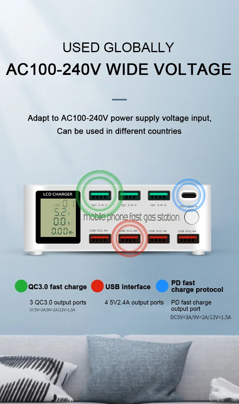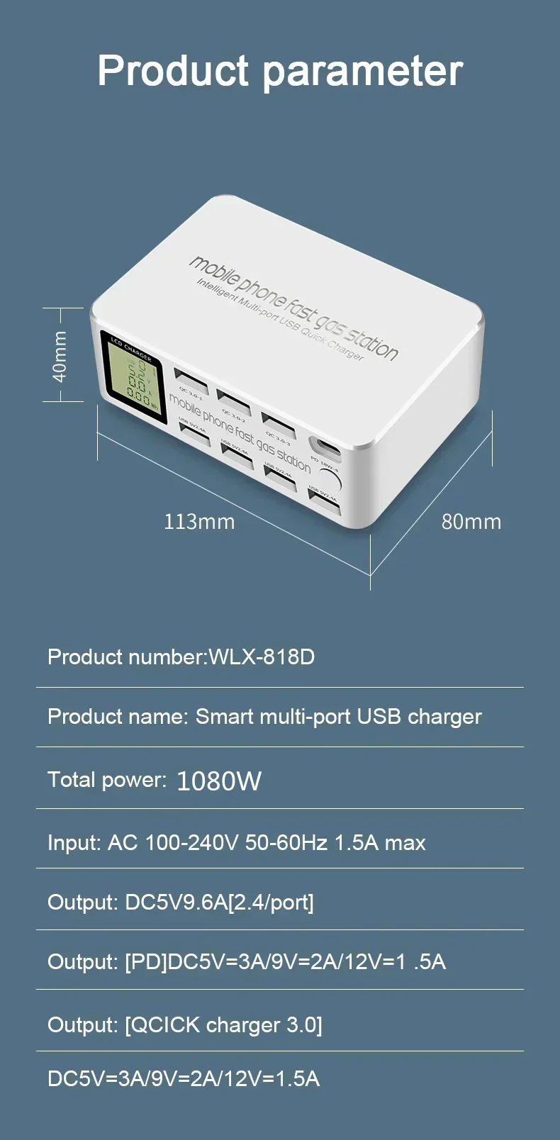 Total Power : 1080 watts of power supports simultaneous charging of 8 devices.
