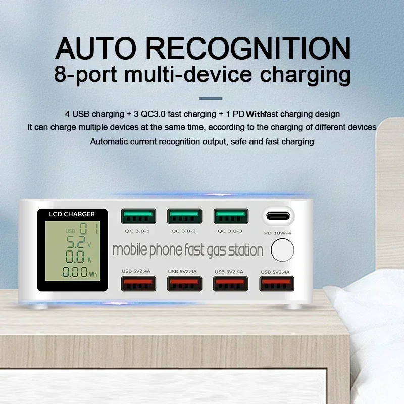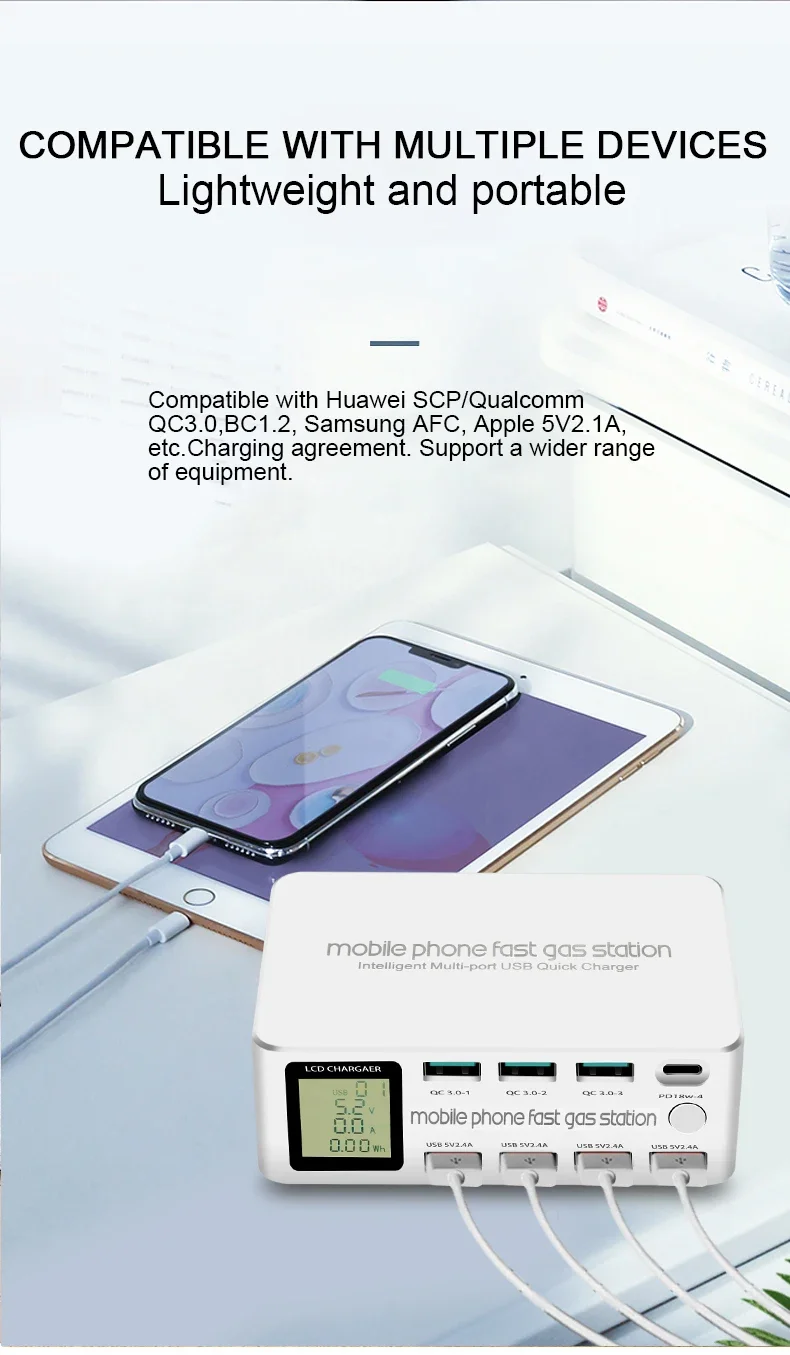 2.8 Ports USB/PD Charger, help you to charge your electric devices at one place at the same time.