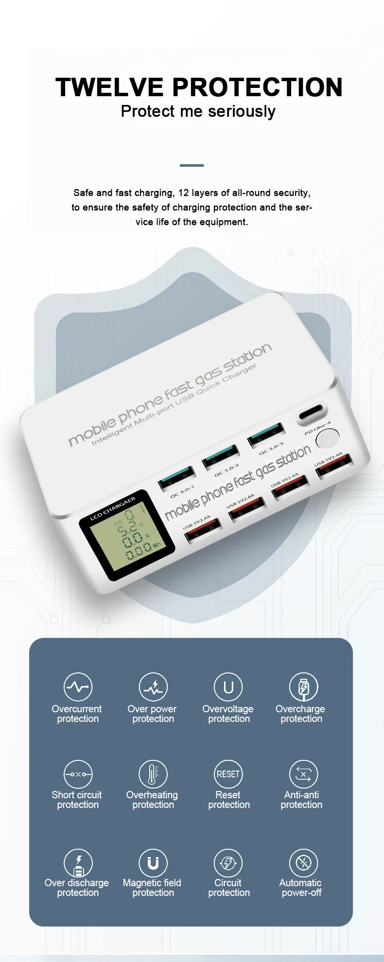 1.Multiple built-in safeguards fully protect against over-current, over-charging and over-heating for safe and fast charging.