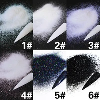 10g/Bag Holographic Laser Black Nail Glitter White Sugar Powder Coating Effect Dipping Pigment Nail Art Decoration Sparkle Dust