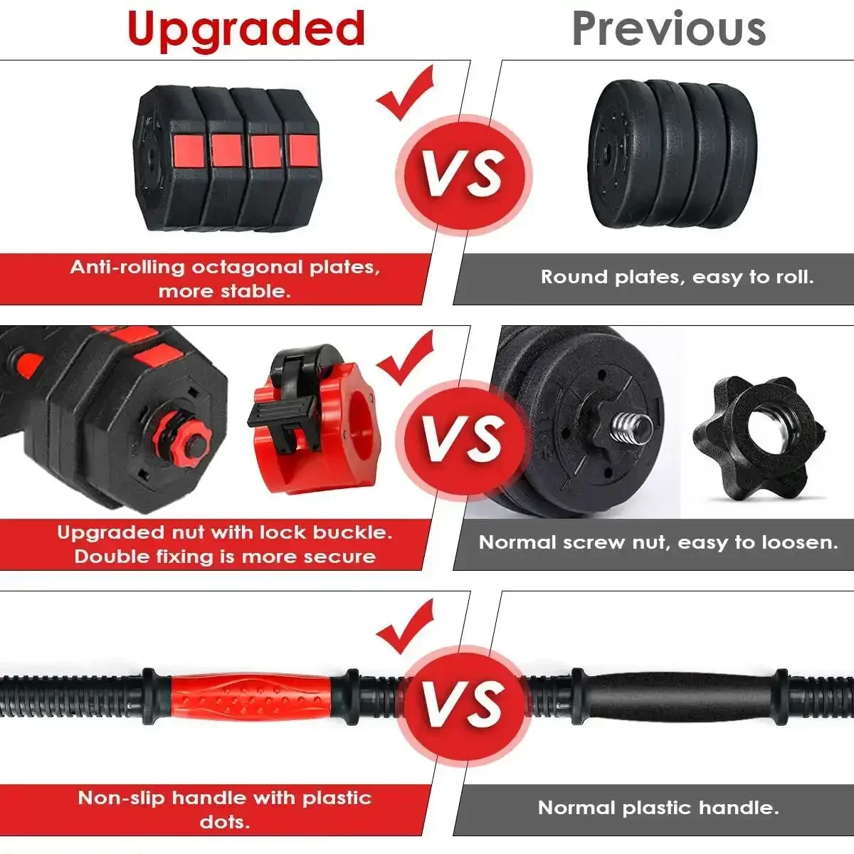 10KG Adjustable Dumbbell Exercise Equipment Set Gym Weights with Bar Fitness Dumbbells Workout Non-Slip Training Exercise Tools