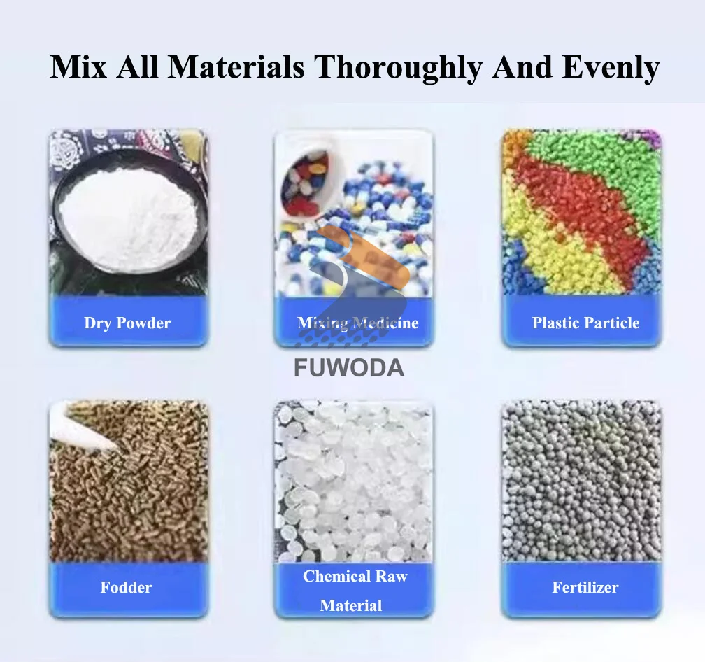 1.The machine is suitable for mixing dry, powdery, granular materials and irregular materials in chemical and food products.
