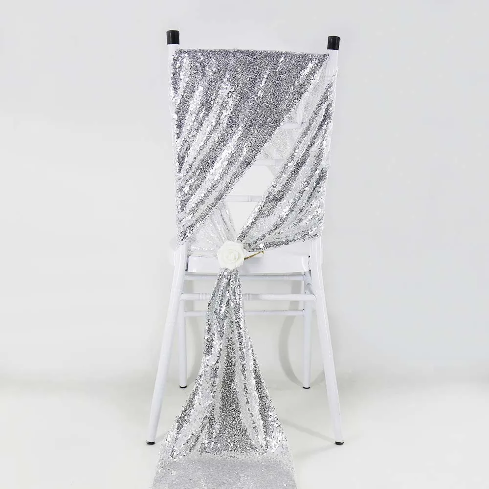 10pcs 30x200cm Sequin Chair Sashes Sparkly Gold Sash Band for Banquet Wedding Party Home Outdoor Chair Cover Sash Decorations