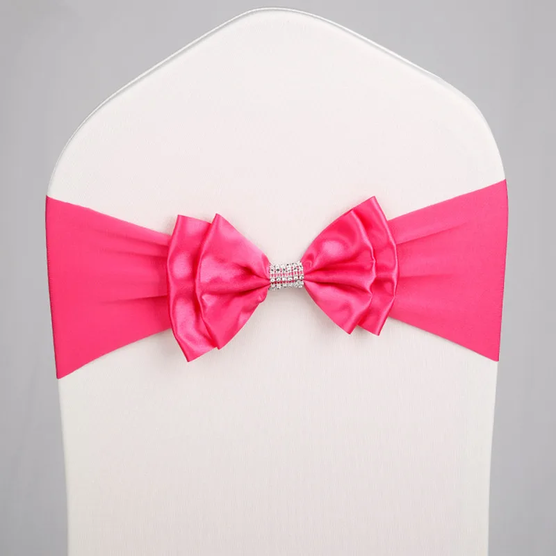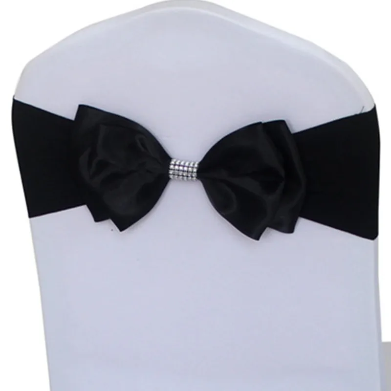10pcs 50pcs Free Tie Elastic Spandex Chair Sash Band Knot With Satin Ribbon Tie Party Wedding Decoration Stretch Chair Bow Sash