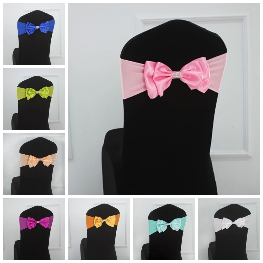 10pcs 50pcs Free Tie Elastic Spandex Chair Sash Band Knot With Satin Ribbon Tie Party Wedding Decoration Stretch Chair Bow Sash