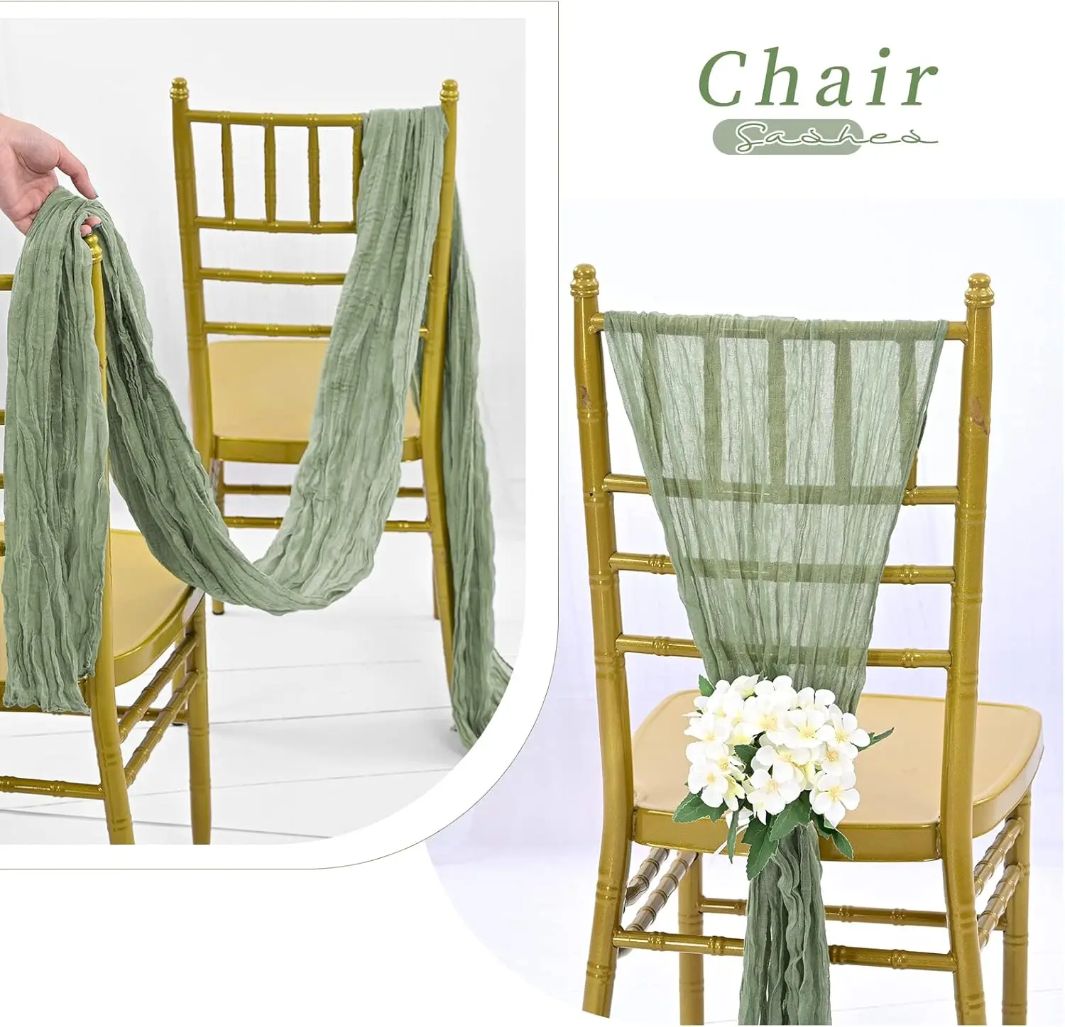 10PCS Sage Green Cheesecloth Chair Sashes Rustic Chair Decorative Bows Designed Chair Cover for Wedding Banquet Party Decoration