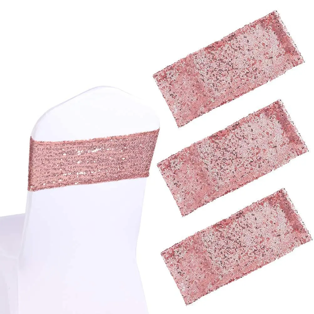 10pcs Sequin Chair Sashes Belt Tie Cover, Wedding Garter Decoration, Knot Ribbon, Banquet Party, Birthday, Home, Kitchen Decor