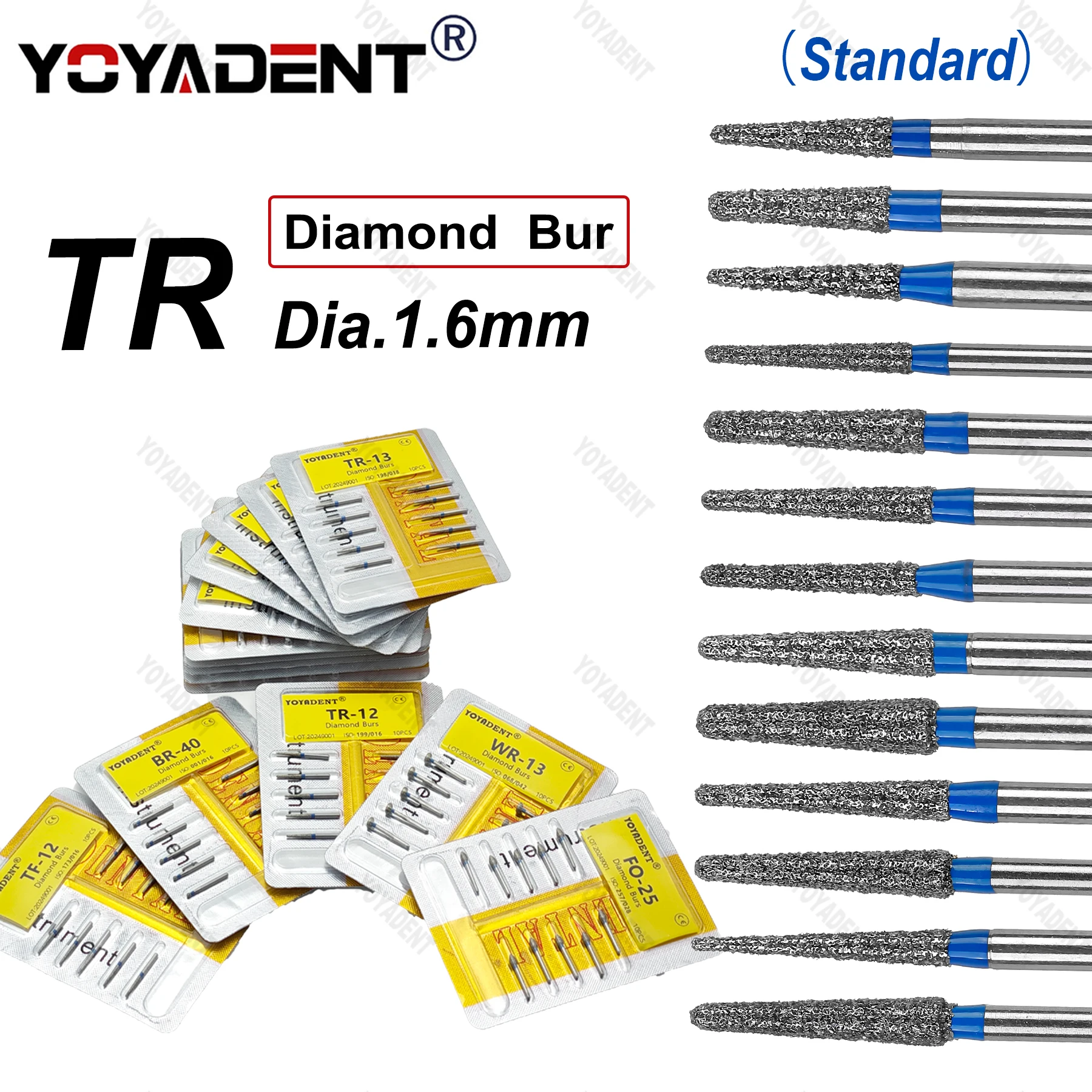 10Pcs TR Type Dental Diamond Bur Dentistry Burs Standard/Coarse/Fine/Extra Fine Dia.1.6mm For High Speed Turbine Dentistry Tools