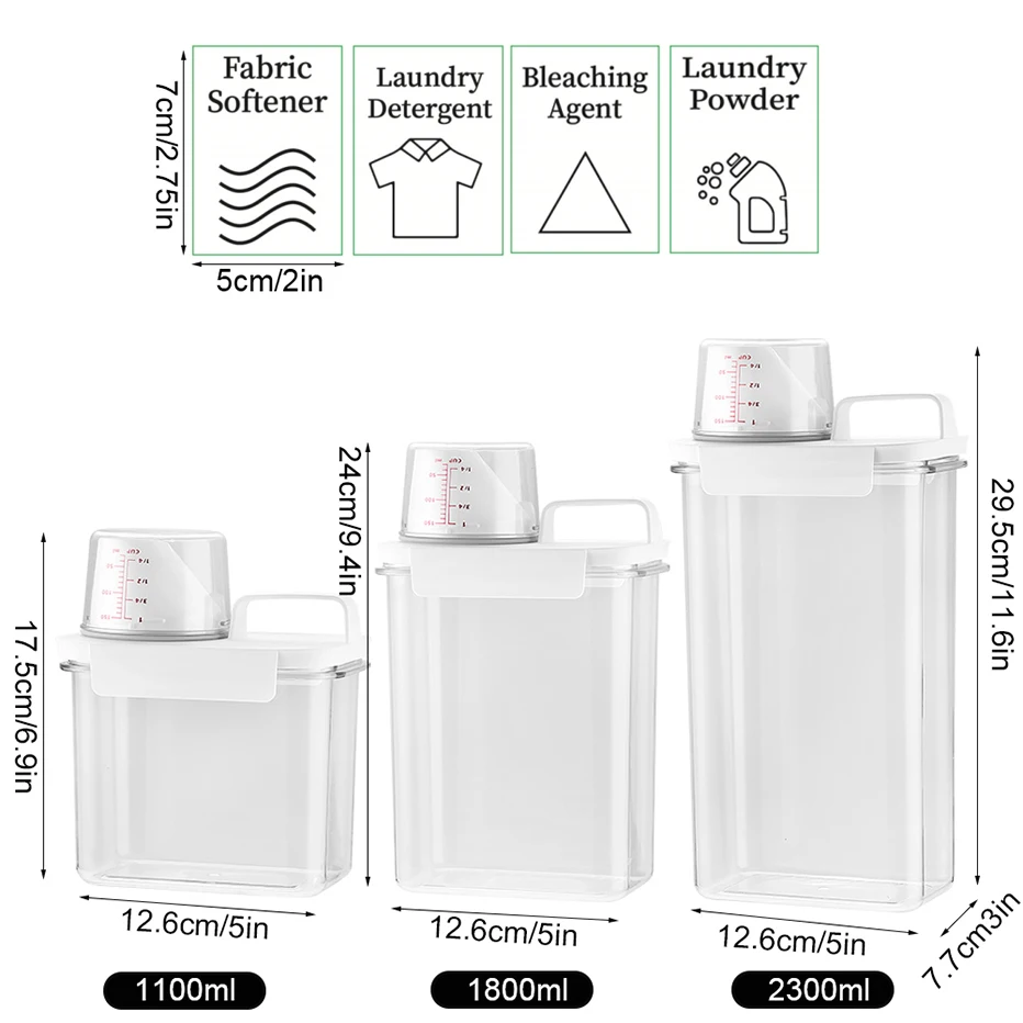 1100/1800/2300Ml Refillable Laundry Detergent Dispenser Empty Tank for Powder Softener Bleach Storage Container with Labels