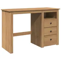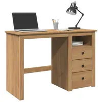 Introduce an air of elegant charm into your study or working area with this wooden desk! Solid pine wood: Solid pine wood is a beautiful natural material. Pine wood has a straight grain, and the knots give the material its signature, rustic look.Ample storage: The office desk with 3 drawers and a compartment provides ample storage space for keeping your study supplies such as books, files, or other useful items within reach.Easy to maintain: Thanks to its smooth surface, the study desk is easy to clean with a damp cloth and requires less maintenance.Wide application: This office table is perfect for any small office, dorm space, space-limited house, or even if you just prefer to manage the space you have! Warning:To prevent it from tipping over, this product must be used with the provided wall attachment device.