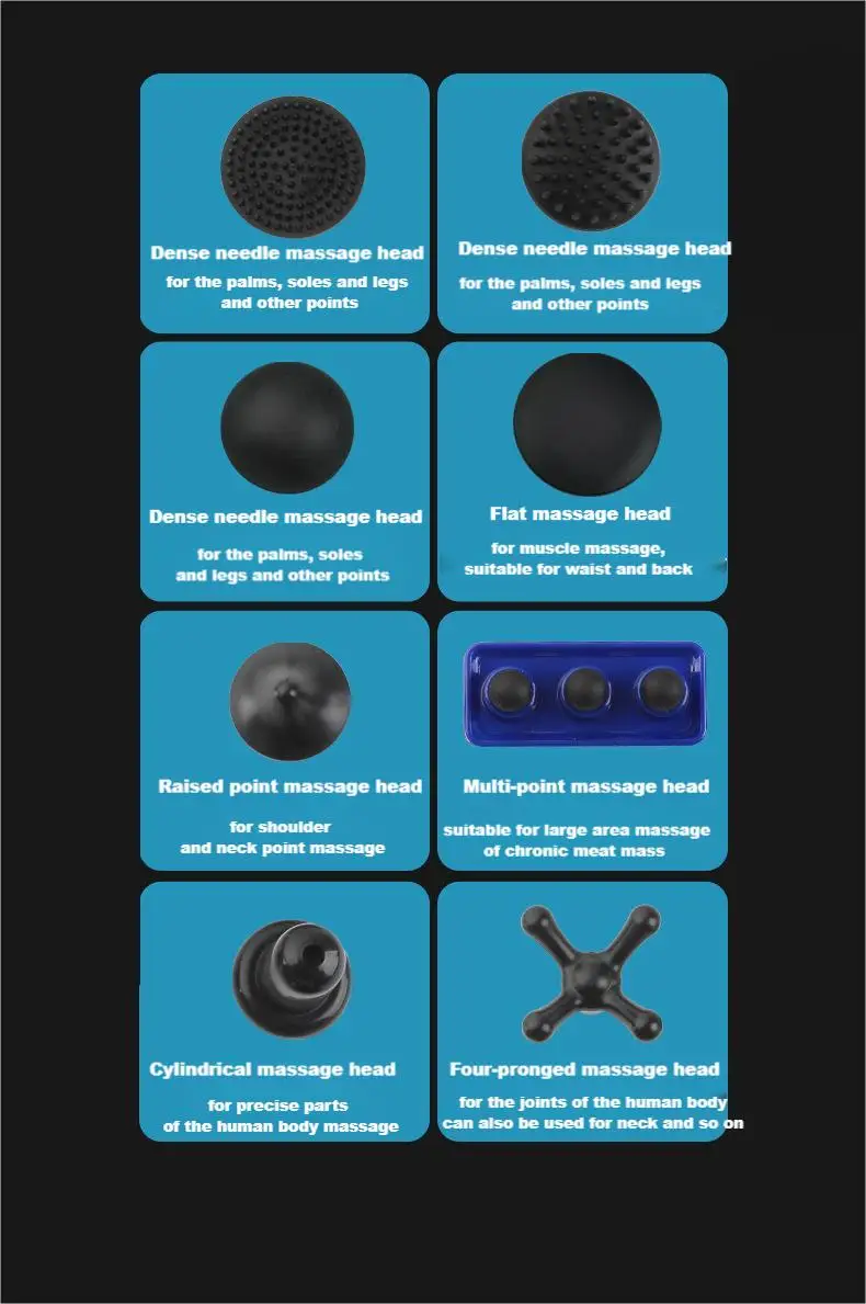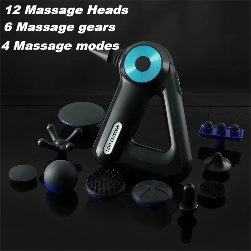 [Multifunctional massage gun] The deep tissue massage gun has 12 different massage heads, each of which is aimed at different muscles. After the massage gun hits the muscles, it can promote blood circulation, decompose lactic acid, and relieve muscle soreness after exercise.