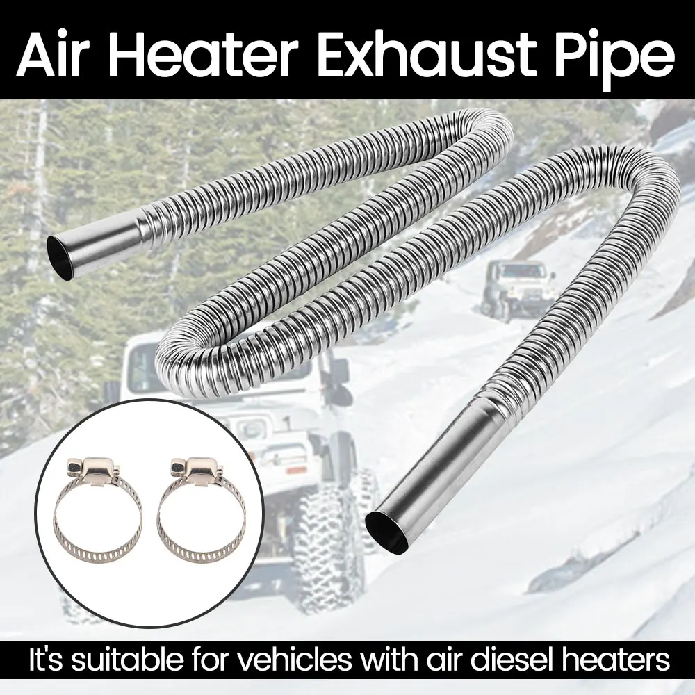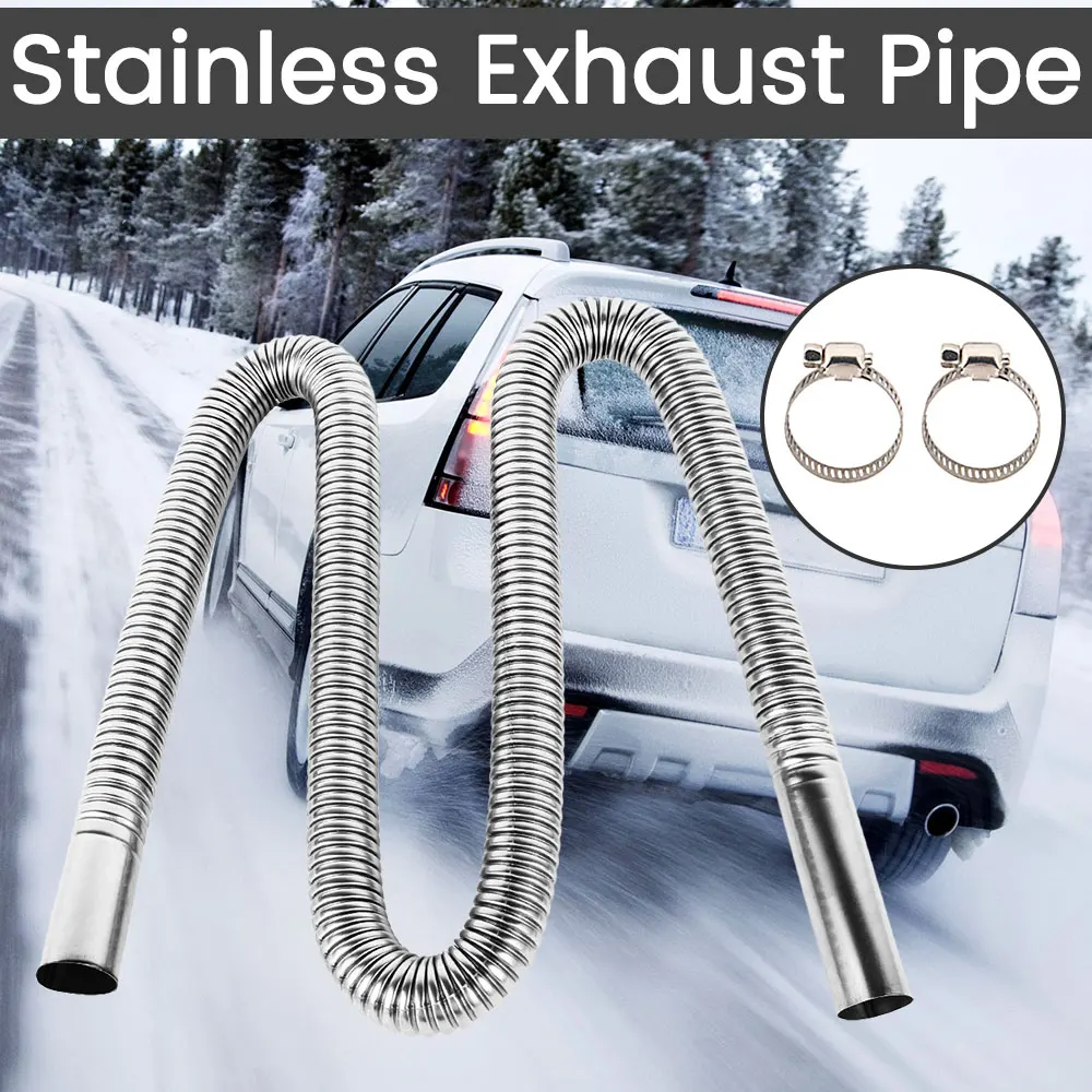 120/200CM Flexible Exhaust Hose Stainless Steel Exhaust Pipe Car Parking Heater Diesel Gas Vent Hose with 2 Exhaust Clamp