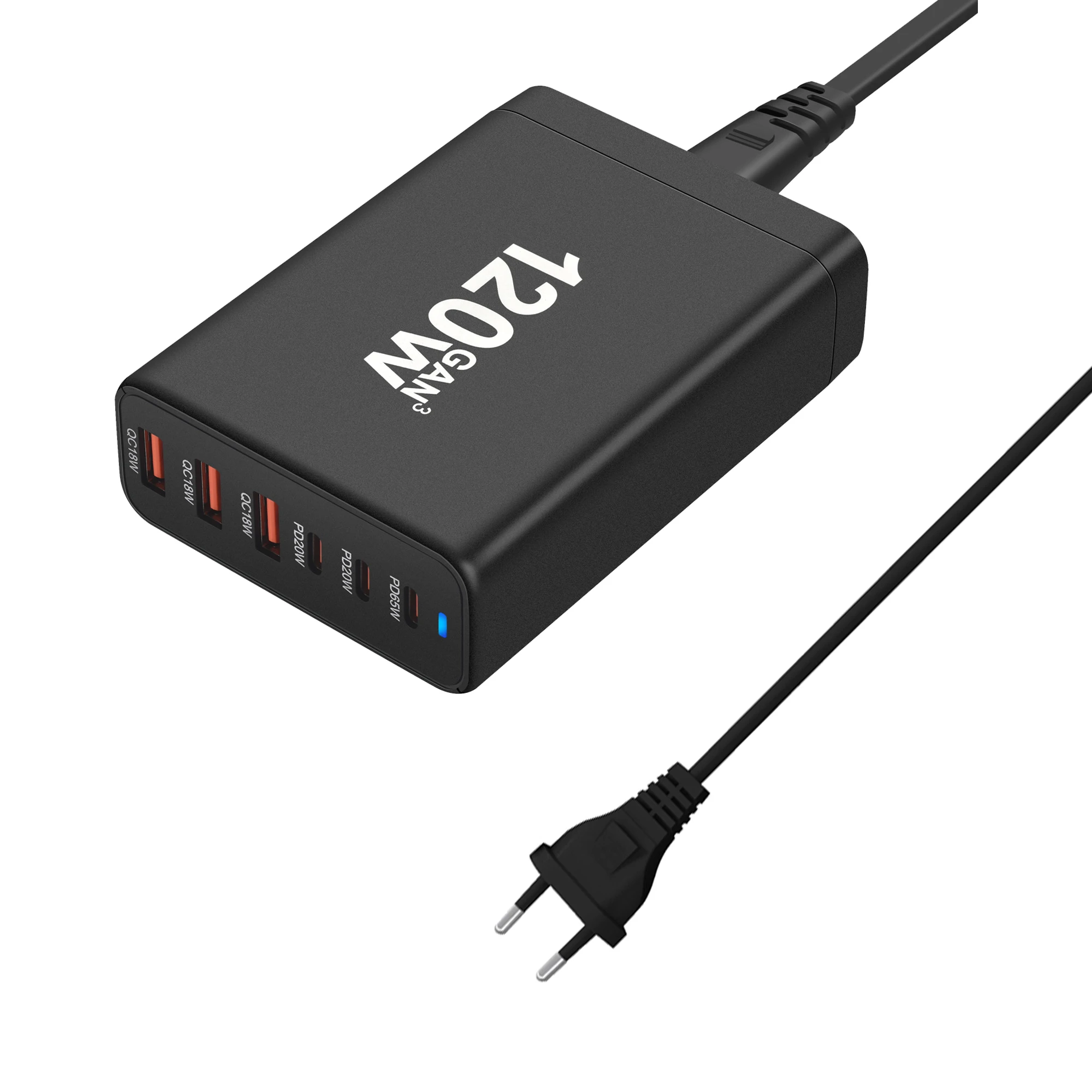 120W GAN Multi USB Charging Station 6 Port Hub Type C Charger PD Fast Charging Station Smart charger For iPhone Samsung Xiaom