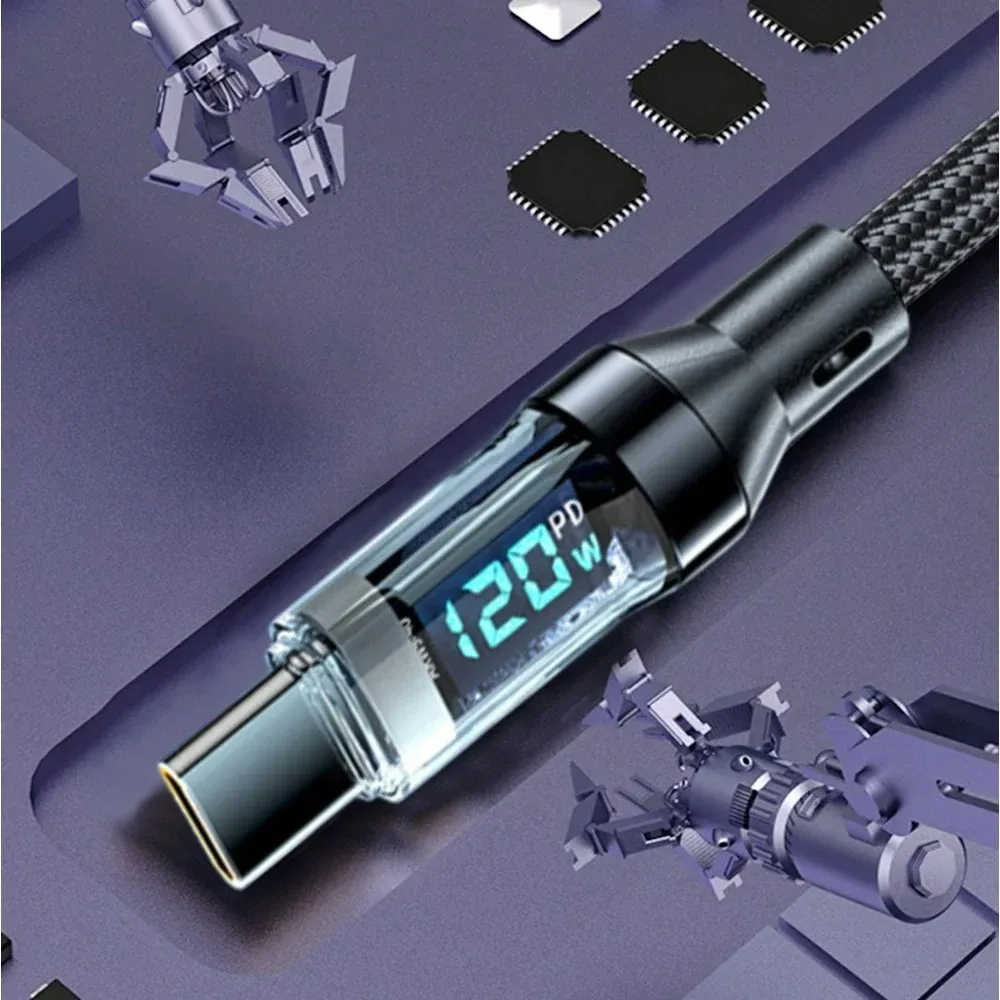 120W Type C to Type C Cable Phone Super Fast Charging Cable With LED Display USB To Type-C Data Cord For Xiaomi Samsung Huawei