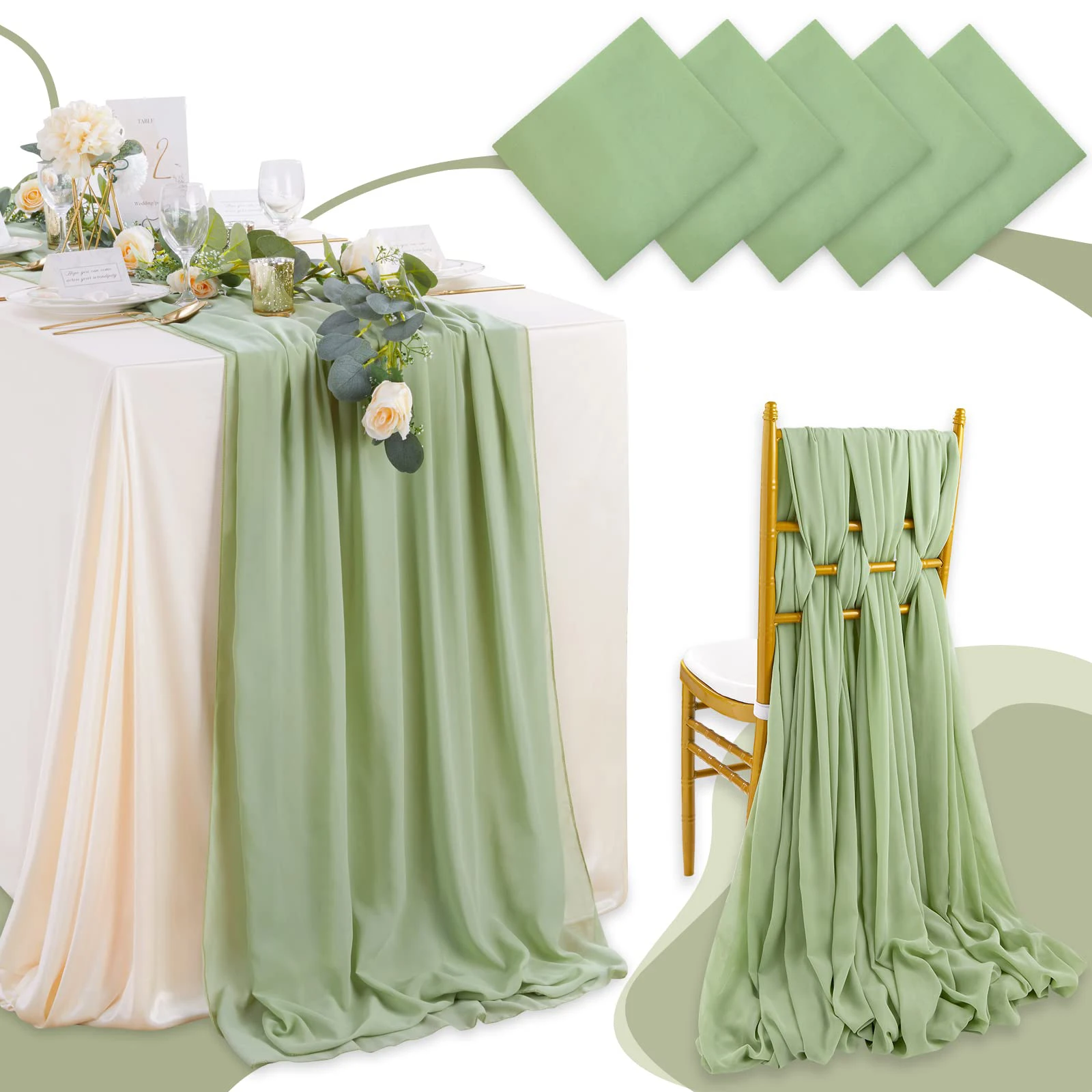 12pcs Chiffon Chair Sashes Wedding Chair Decors Chiffon 30x270cm Table Runner for Party Banquet Event Baby Shower Holiday Decor