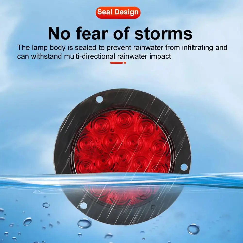 12V 24V 16 LED 4″ Round Rear Tail Lights Turn Signal Brake Stop Reverse Lamp Car Truck Trailer Lorry Red Yellow White