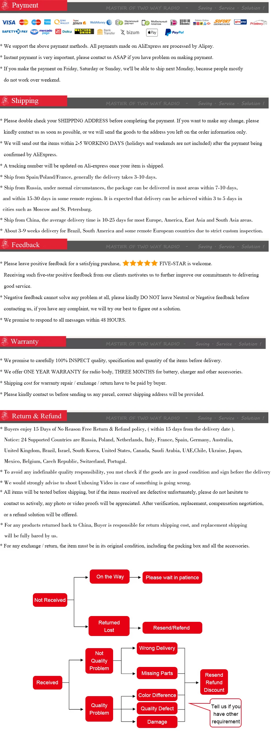 Compatible Radio Models: UV-5R / UV-5R+ / UV-5RA / UV-5RA+ / UV-5RB / UV-5RC / UV-5RD / UV-5RE /UV- 5RE PLUS Input voltage: DC 12V Output voltage: 7.4V Weight:65g