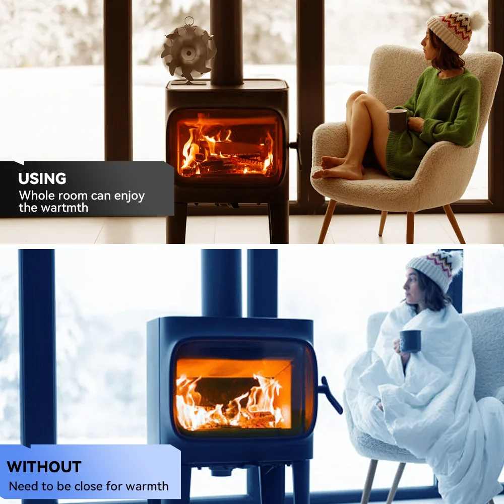 1. The Heat powered stove Fans does not bring direct temperature increase but only a tool to accelerate the heat transfer of the chimney.