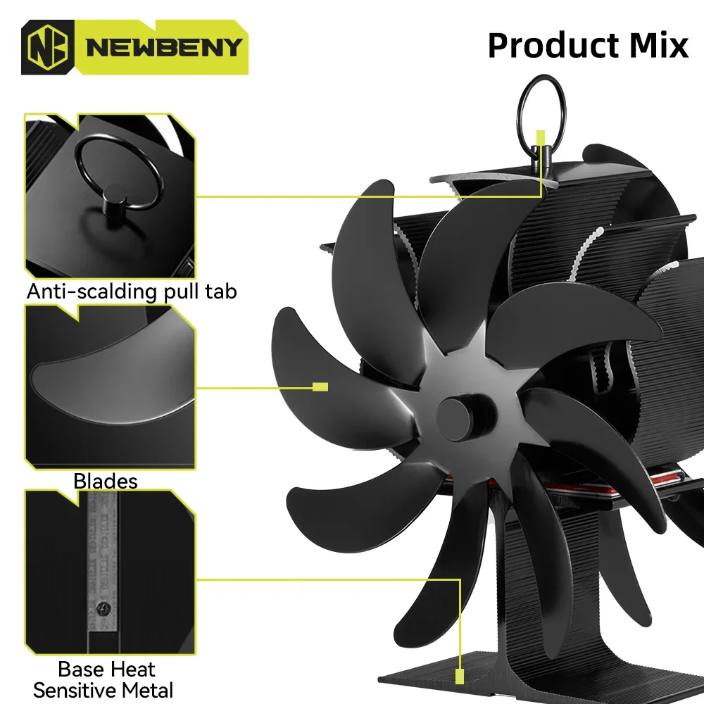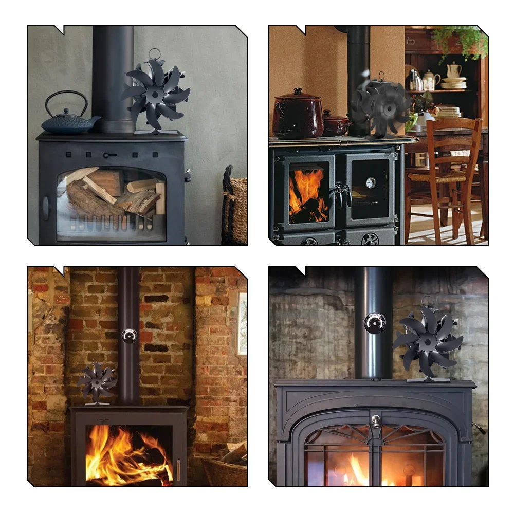 1.- Start Automatically: Upgrade Technology,Faster Speed,Larger Air Volume.The heat powered stove fan is designed to circulate the warm air created by a wood / coal or pellet burning.Efficiently circulates warm air throughout the house.