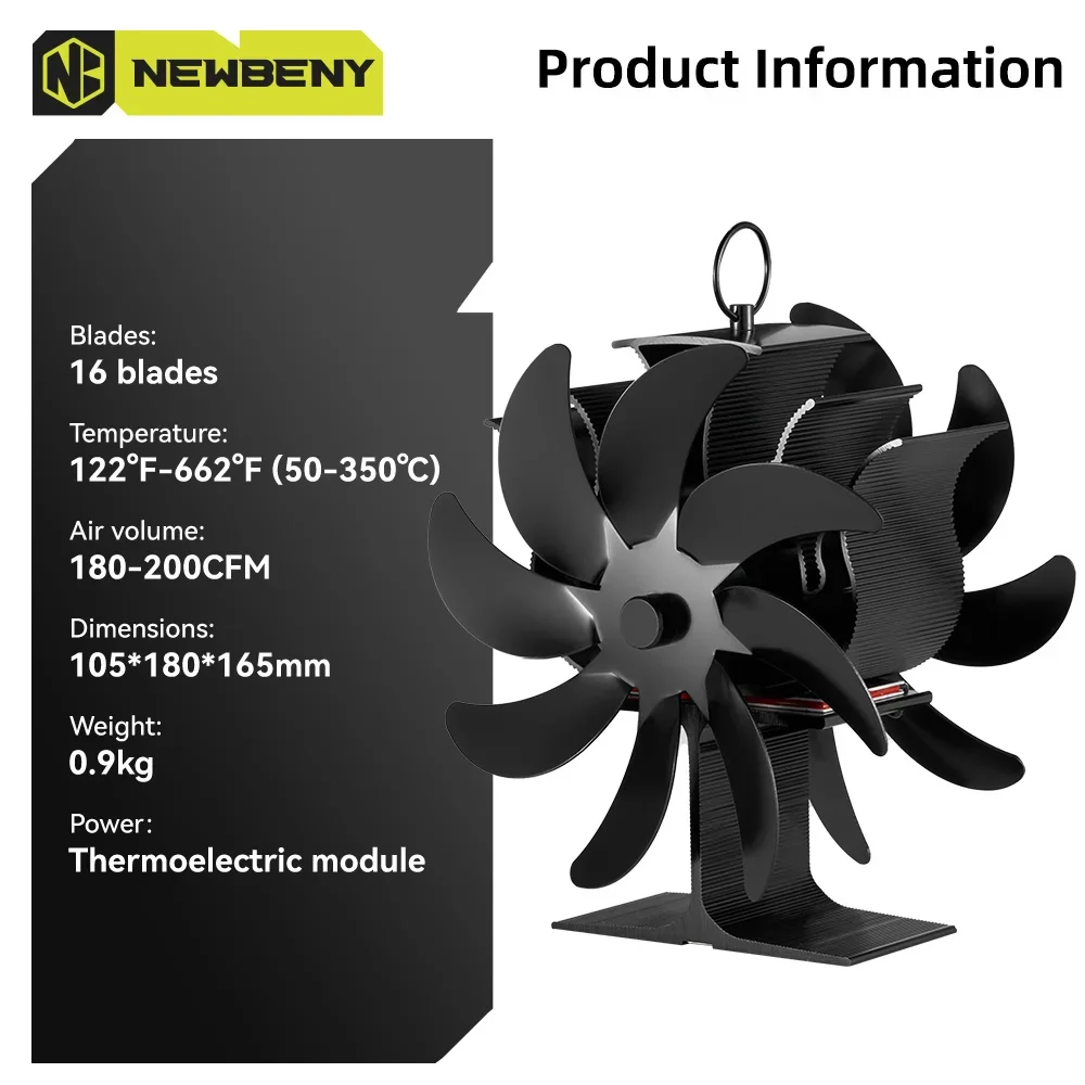 16 Blades Heat Powered Fireplace Fan Double Sided Log Wood Burner Ecological Efficient Home Heat Distribution Quiet Stove Fan