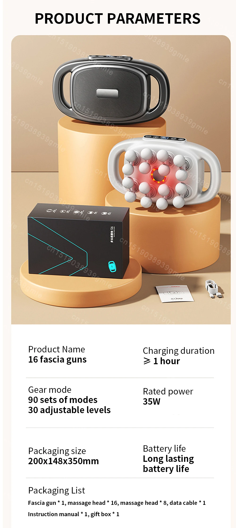 16 Heads Fascial Massage Gun Vibration Massager Deep Tissue Massage Fascia Gun Shoulder Neck Back Muscle Massager