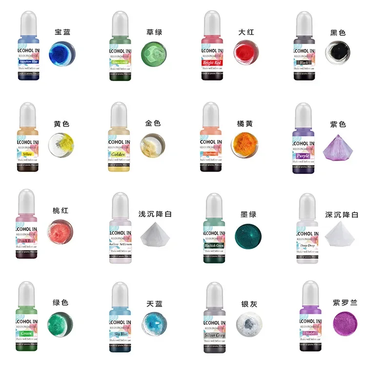 16pcs DIY Epoxy Resin Pigment Kit Art Ink Alcohol Liquid Colorant Dye Diffusion Pigment DIY UV Epoxy Resin Mold Jewelry Making