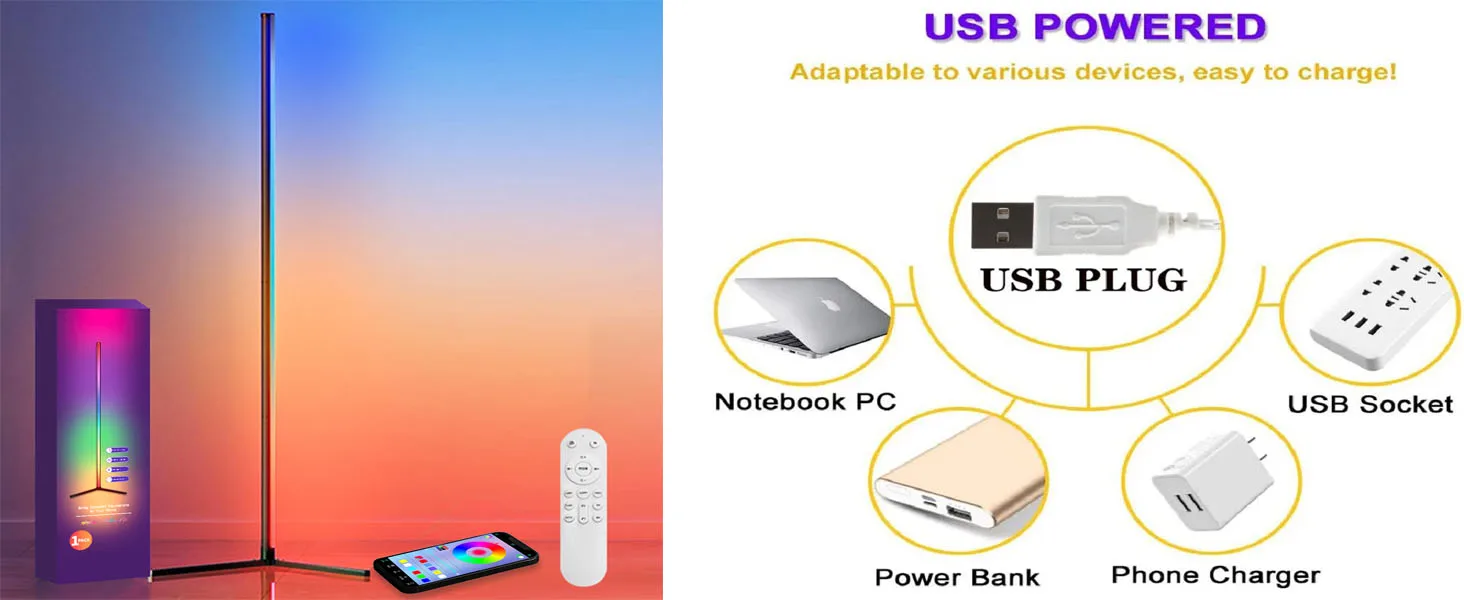 The LED floor lamp has a built-in low power consumption and soft light RGB strip, RGB/IC technology has 16 million colors to illuminate your home, no longer limited to mundane lighting, you can freely adjust the color of the lamp to create warm, romantic, comfortable or inviting atmosphere.