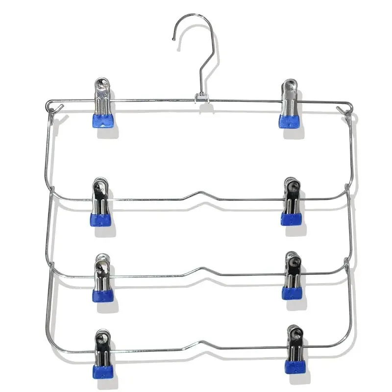 1PC Multilayer Clothes Hangers with 8 Clips Clothing Storage Rack Holder Drying Wardrobe Folding Pants Clothes Metal Skirt Rack