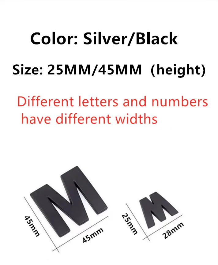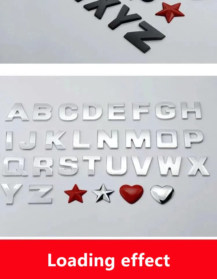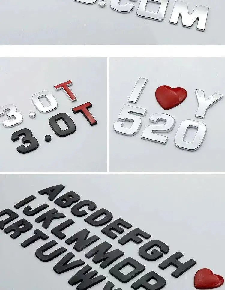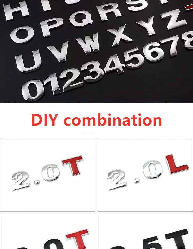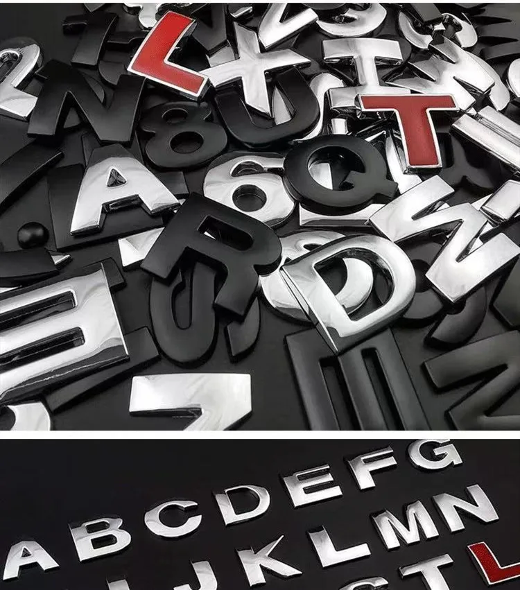 Item description: 3 d alphanumeric combination Including English letters, Numbers, symbols, points can be combined into a metal emissions standard.