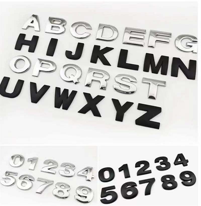 3D metal Letters Car Sticker A-Z/0-9 silver black automobile Digital Figure Number Chrome DIY Car styling decoration sticker