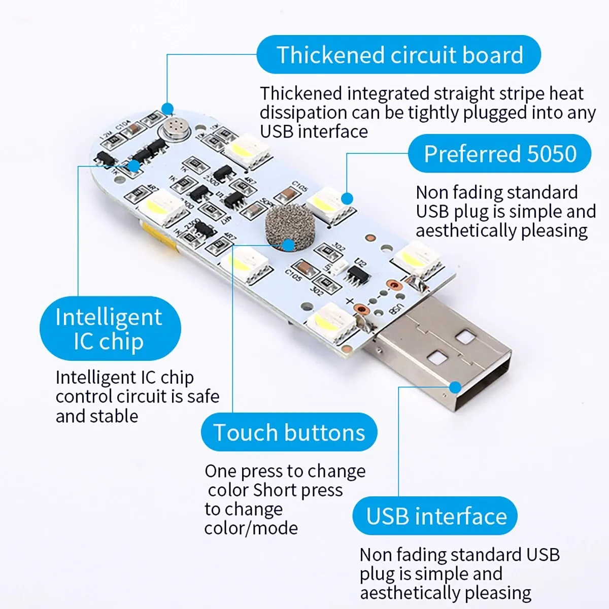 1pcs 9SMD Touch Light USB Sensor Rechargeable Touch LED Lamp Mini Atmosphere Light Car Ambient Party Light Night Light