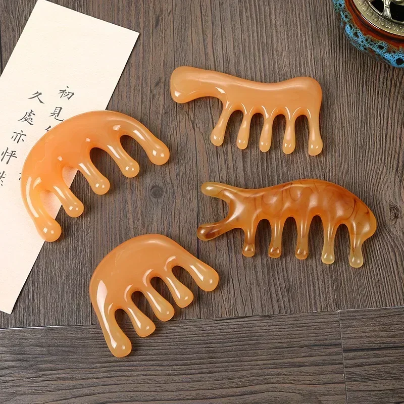 1Pcs Resin Meridian Massage Comb Head Face Neck Acupuncture Therapy Scalp Relaxation Massage Portable Wide-Tooth Massager