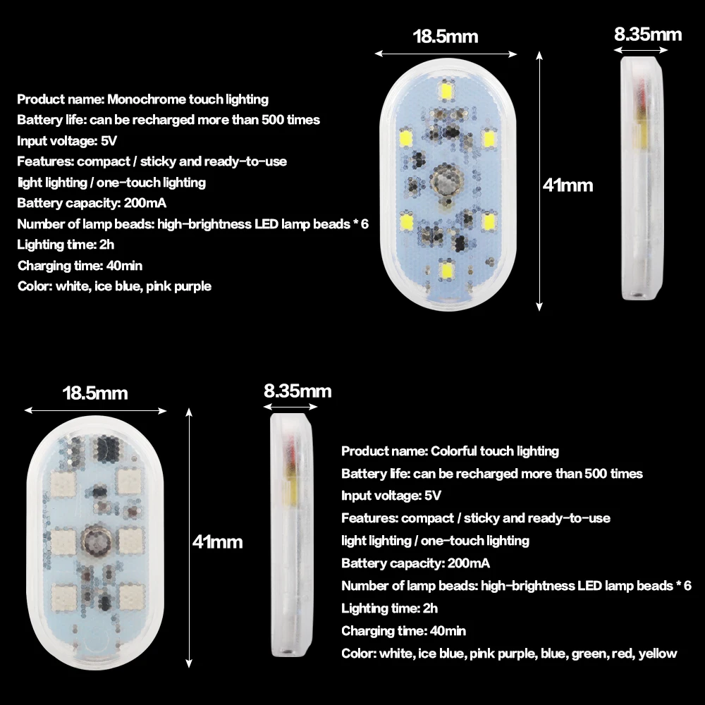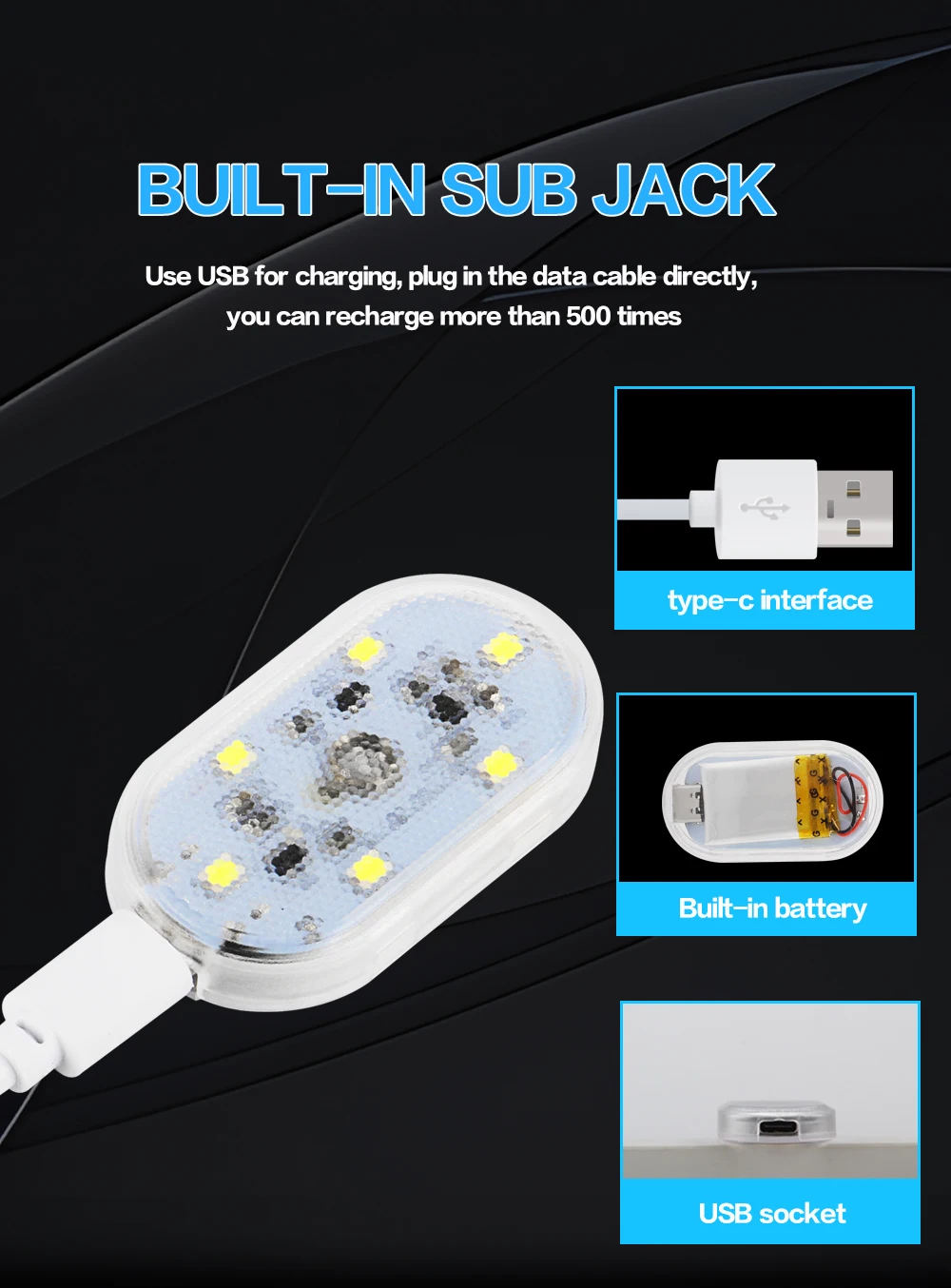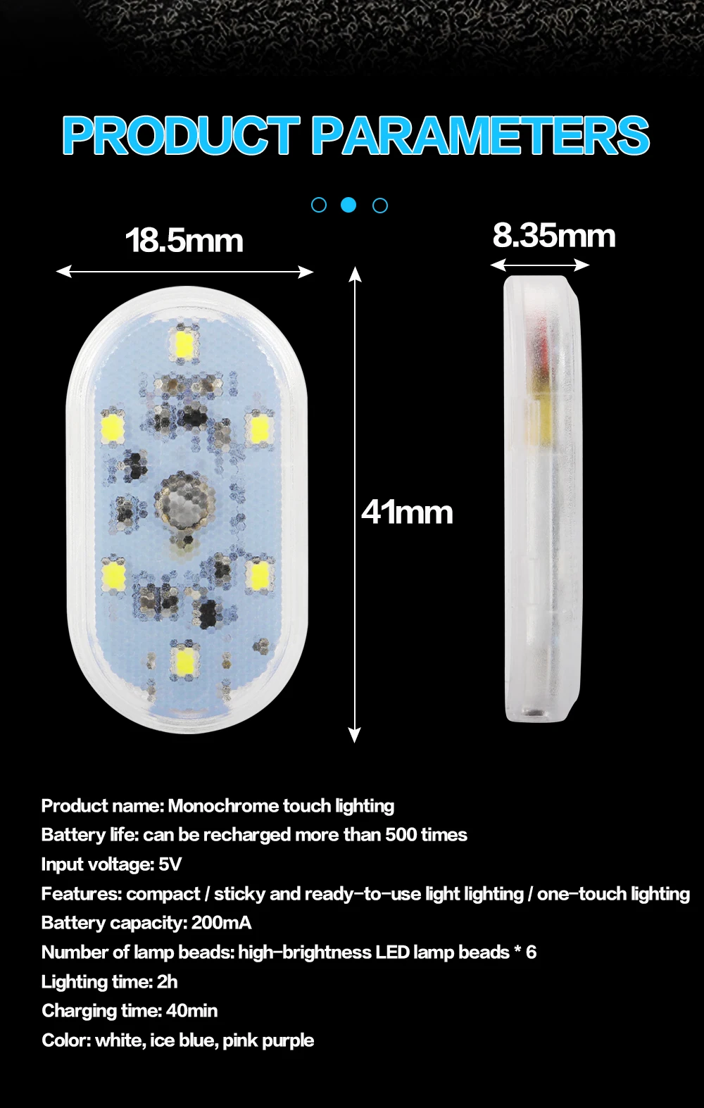 1piece Touch Sensor USB LED Interior Light LED Lamp Car Ceiling Lamp Reading Light Car Decorations Roof Interior Lighting
